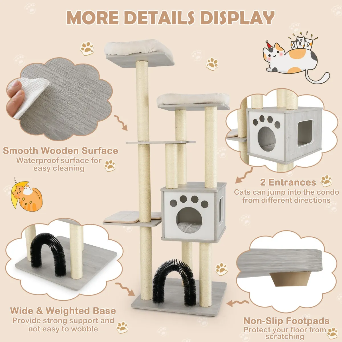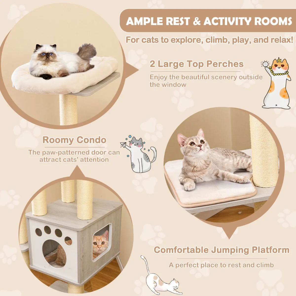 【Hoge krabpaal】: De hoge krabpaal is uitgerust met meerdere palen van natuurlijke sisaltouwen, die helpen om positieve krabgewoonten te ontwikkelen en tegelijkertijd je meubels tegen krassen te beschermen. Bovendien maakt de grote krabpaal met 6 verdiepingen de kittens in staat om hun uitstekende klimvaardigheden te tonen en tegelijkertijd hun instincten te vervullen.