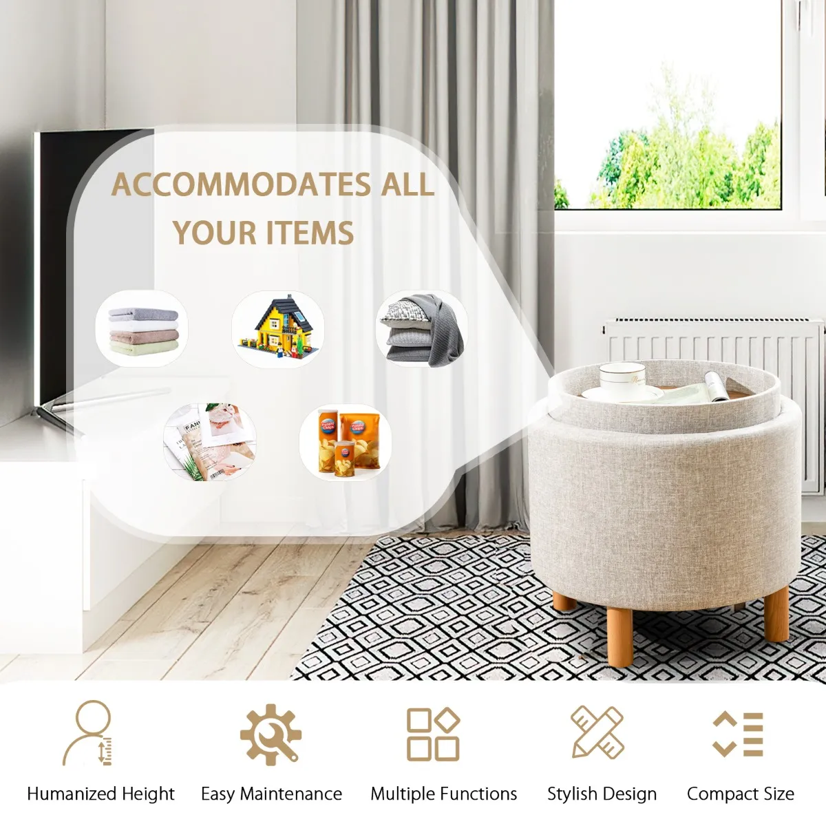 【Afneembaar tafel】: De ronde voetenbank is uitgerust met een afneembaar dienblad, waarmee je deze kruk als theetafel kunt gebruiken. Als je het deksel omdraait, kun je desserts en kopjes neerzetten om van een aangename theepauze te genieten.