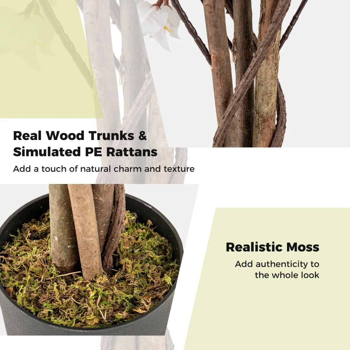 [Levendige en natuurlijke verschijning]: Deze 120 cm hoge kunstboom beschikt over 360 rozerode/pure witte bloemen en 40 groene bladeren, die zeer lijken op het uiterlijk van echte bougainvillea-bomen. Bovendien is hij versierd met realistisch mos, echte houten stammen en gesimuleerd PE-rotan, wat het natuurlijke uiterlijk versterkt.