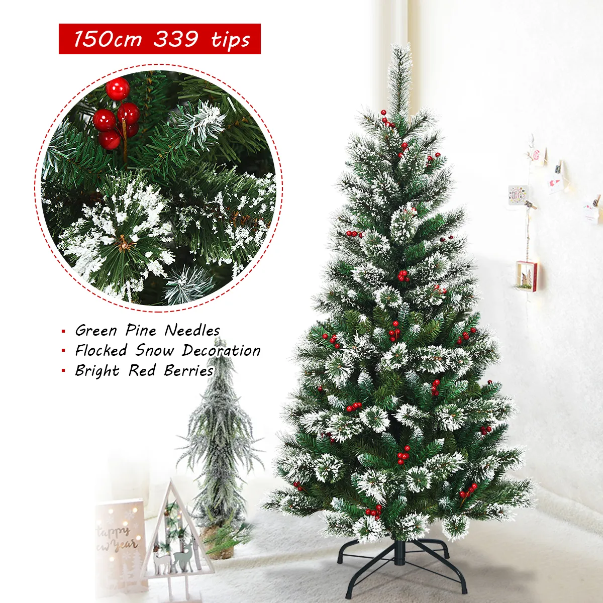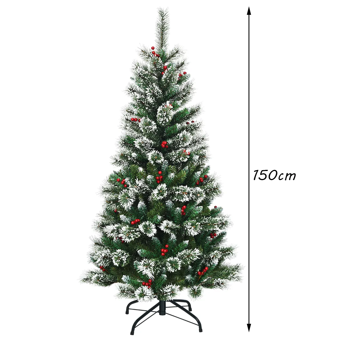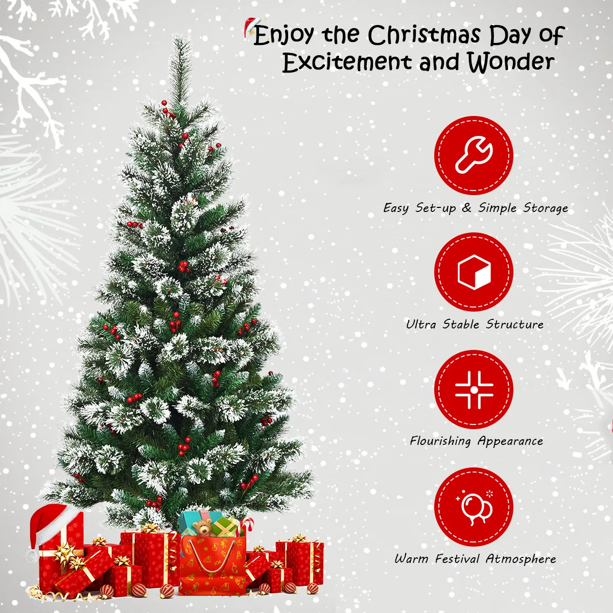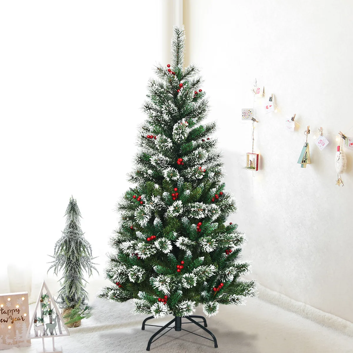 Is er iets feestelijkers dan de kerstboom? Breng dit met sneeuw bedekte faux-exemplaar naar huis en heb een reden om te juichen. Gemaakt van 100% nieuw PVC, het heeft een hogere duurzaamheid, levendigere kleuren en een stevigere structuur dan een goedkope boom die gerecyclede materialen gebruikt. Het wordt ook gekenmerkt door zijn opvallende design, mooie kleurencombinaties en decoratieve kerstelementen. Naalden met sneeuwvlokken, felrode bessen en groene twijgen zorgen allemaal voor een prachtige uitstraling die de feestelijke sfeer versterkt. De opvouwbare boom is eenvoudig te monteren of te demonteren voor eenvoudig opbergen. Dankzij de robuuste ijzeren voet staat hij erg stabiel. Versier je kamer met deze kunstmatige maar mooie kerstboom voor een sfeer van vrolijkheid en feest.
