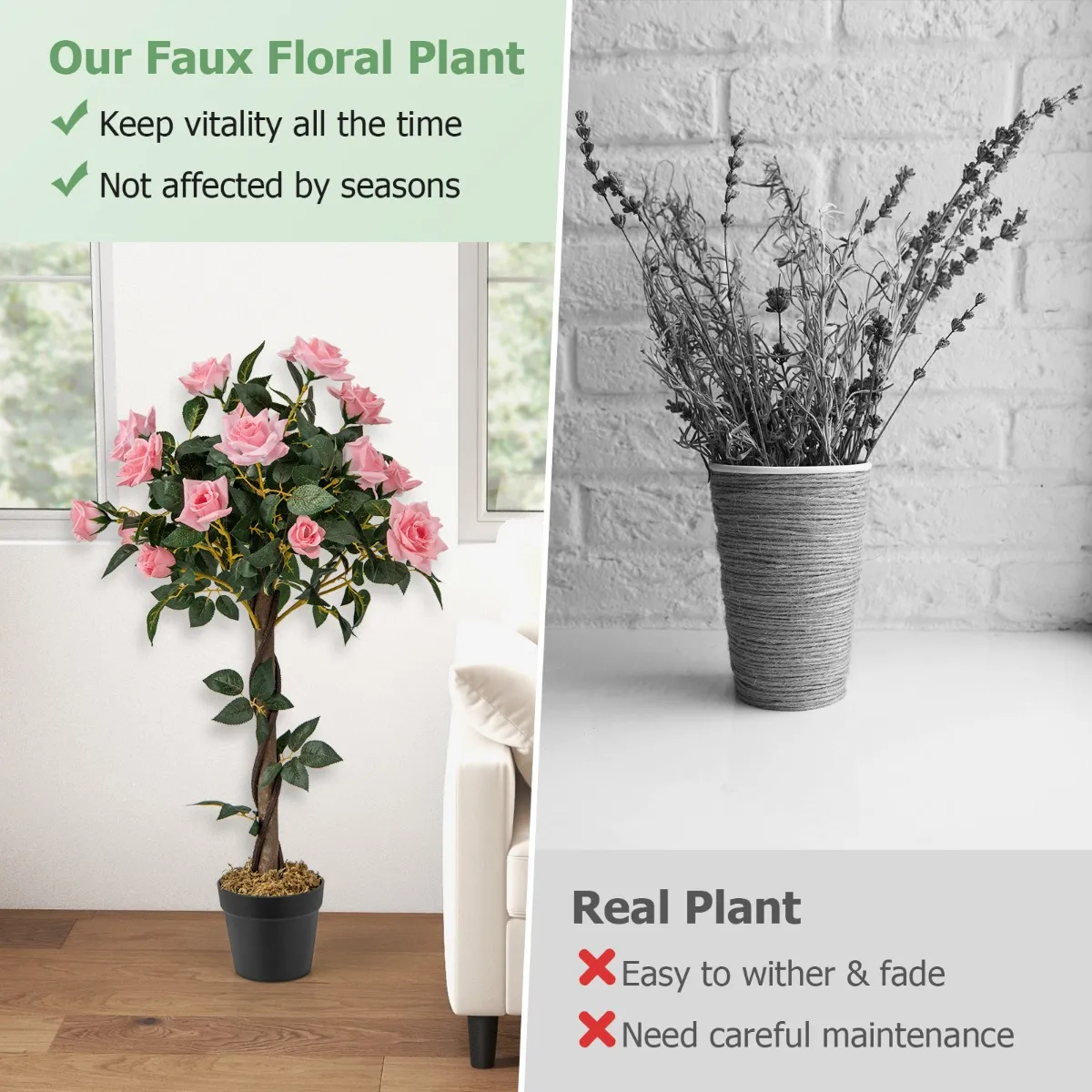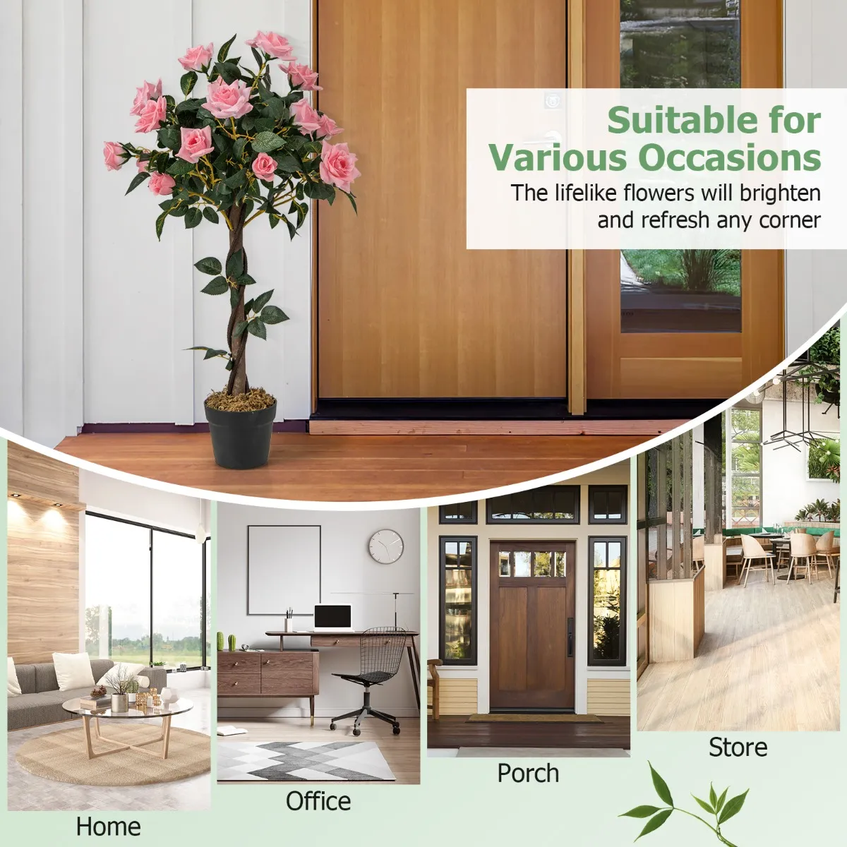 Onze kunstbloemenboom van 93 cm bevat 21 delicate rozen en 259 realistische bladeren voor een levensechte look.