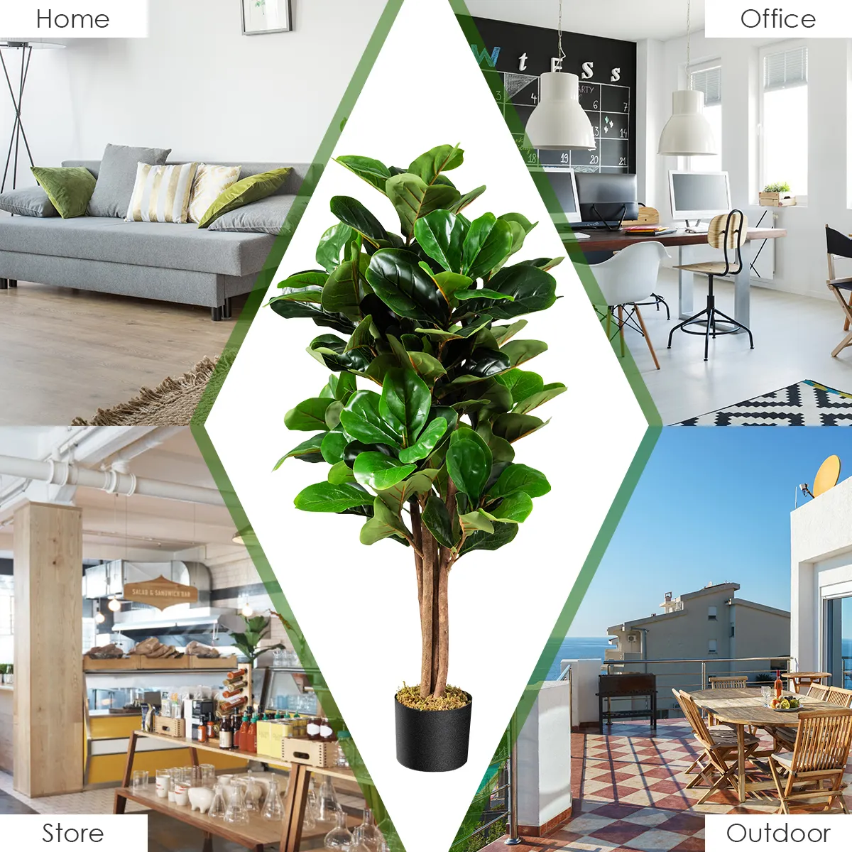 - Verpakking: 1 x Kunstvijgenboom met vioolbladeren