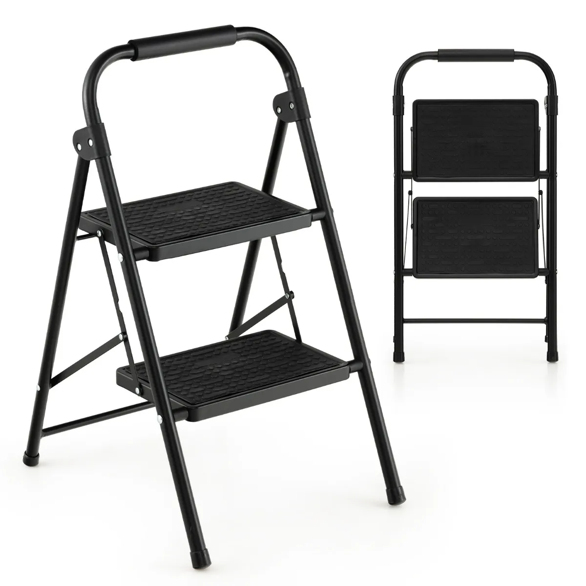 Opvouwbare en draagbare ladder: Dankzij het inklapbare ontwerp kun je de tweetraps ladder eenvoudig tot een compact formaat opvouwen en ruimtebesparend opbergen, door de veiligheidsvergrendeling aan de onderkant van de bovenste trede los te maken en de achterkant van het bovenste pedaal op te tillen. Met een gewicht van 3,5 kg kun je de ladder probleemloos verplaatsen waar je hem nodig hebt