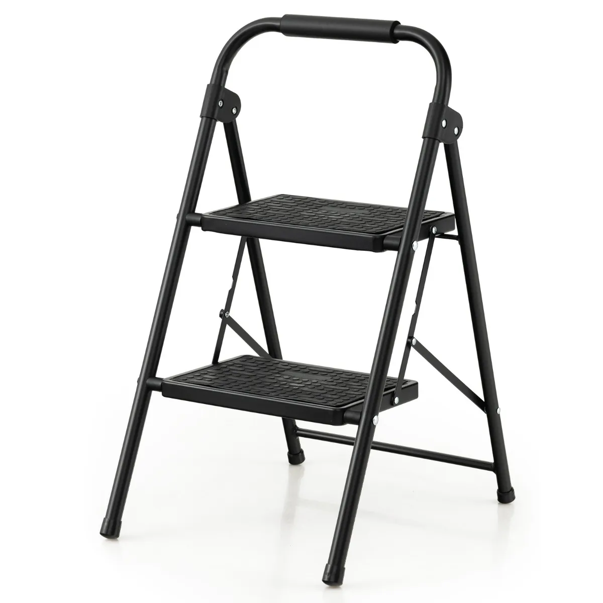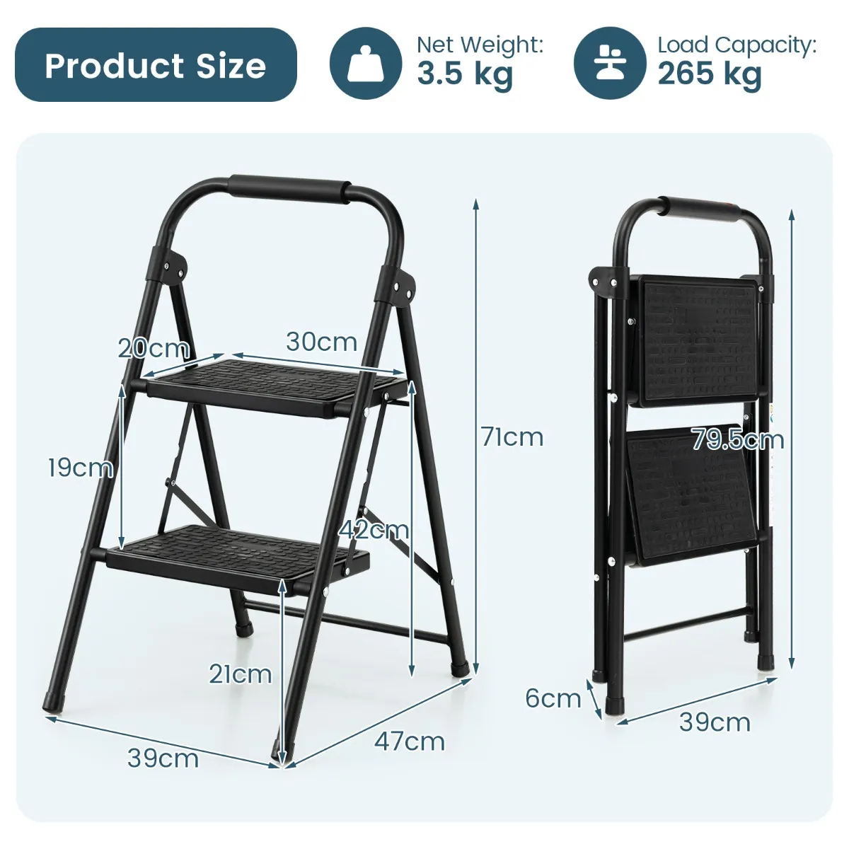 Deze inklapbare 2-traps ladder is uitgerust met extra brede, antislip treden die een veilige stand garanderen. Bovendien biedt de comfortabel gevoerde handgreep een veilige grip en voorkomt dat je per ongeluk valt. De van robuust metaal vervaardigde 2-traps ladder biedt een stabiel standoppervlak, dat tot 265 kg gewicht kan dragen. Daarnaast bevindt zich onder de bovenste trede een veilig vergrendelingssysteem, dat het inklappen van de ladder vergemakkelijkt en ervoor zorgt dat de ladder tijdens het gebruik niet wegglijdt. Dankzij het inklapbare ontwerp kun je hem probleemloos in een hoek opbergen als je hem niet nodig hebt. En deze lichte ladder is gemakkelijk te verplaatsen.