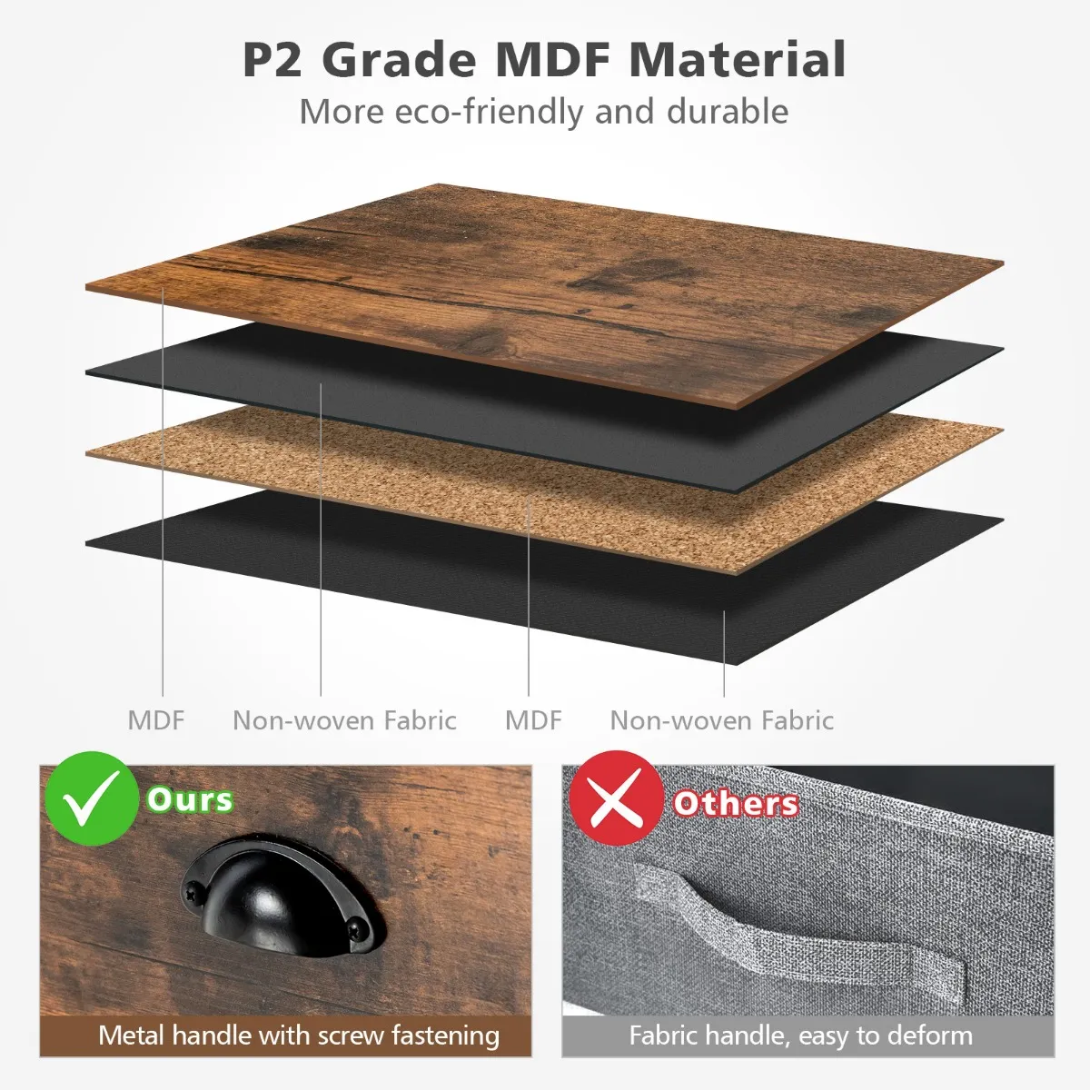 Stevige structuur en duurzaam materiaal: Het frame is gemaakt van gepoedercoate stalen buizen, die roestvrij zijn en een groot draagvermogen mogelijk maken. De laden combineren MDF en non-woven stof en kenmerken zich door een hoge slijtvastheid en een maximaal draagvermogen tot 5 kg. Bovendien maakt deze ladekast gebruik van MDF van klasse P2, wat milieuvriendelijker en steviger is.