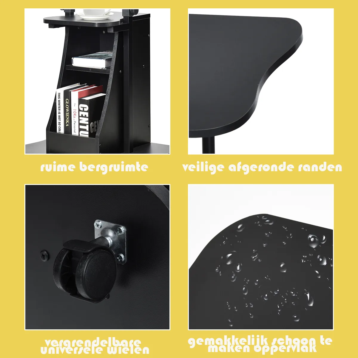 【Grote opslagruimte】 Brede desktop biedt voldoende ruimte voor uw dagelijkse werkvereisten. En deze laptoptrolley is uitgerust met twee open opbergvakken om uw boeken, bestanden en andere kantoorbenodigdheden in op te bergen, zodat u een nette en georganiseerde werkruimte hebt.