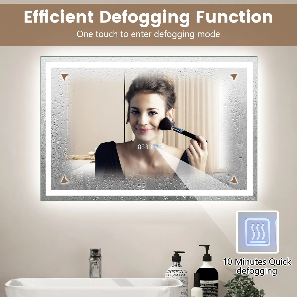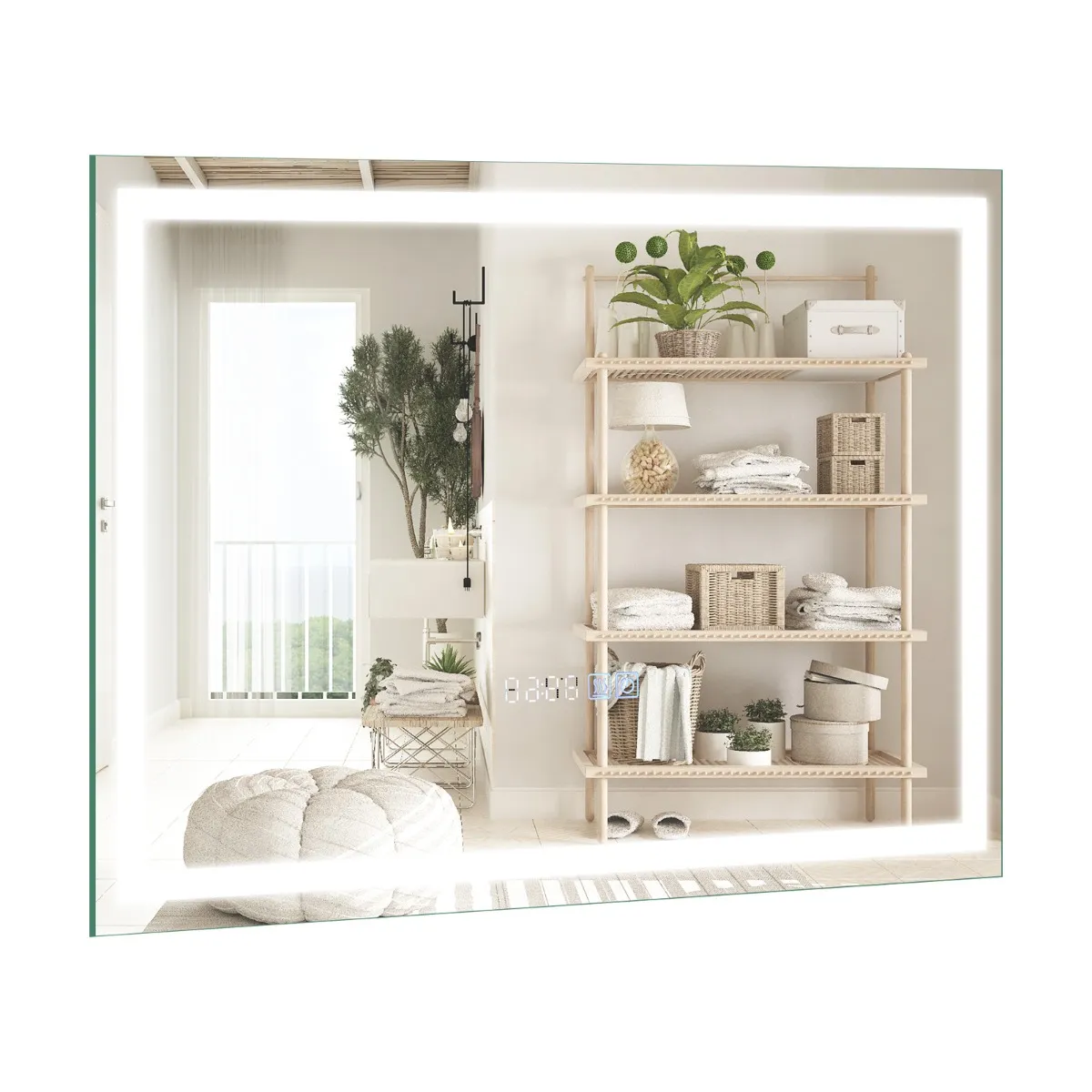 Deze wandspiegel voor de badkamer is niet alleen functioneel, maar voegt ook een vleugje elegantie toe aan je badkamerinrichting. De LED-verlichting is dimbaar en verkrijgbaar in 3 verschillende kleuren, en de geheugenfunctie zorgt ervoor dat je favoriete instellingen worden opgeslagen voor extra gemak. Met een geïntegreerd display voor tijd en temperatuur geeft deze badkamerspiegel nuttige informatie en voegt hij een modern tintje toe aan je badkamer. De aanraakbediening maakt hem gebruiksvriendelijk, zodat je eenvoudig de verlichting en instellingen kunt aanpassen. Hij wordt geleverd met alle nodige accessoires voor een eenvoudige installatie, of je hem nu in het stopcontact steekt of inbouwt.