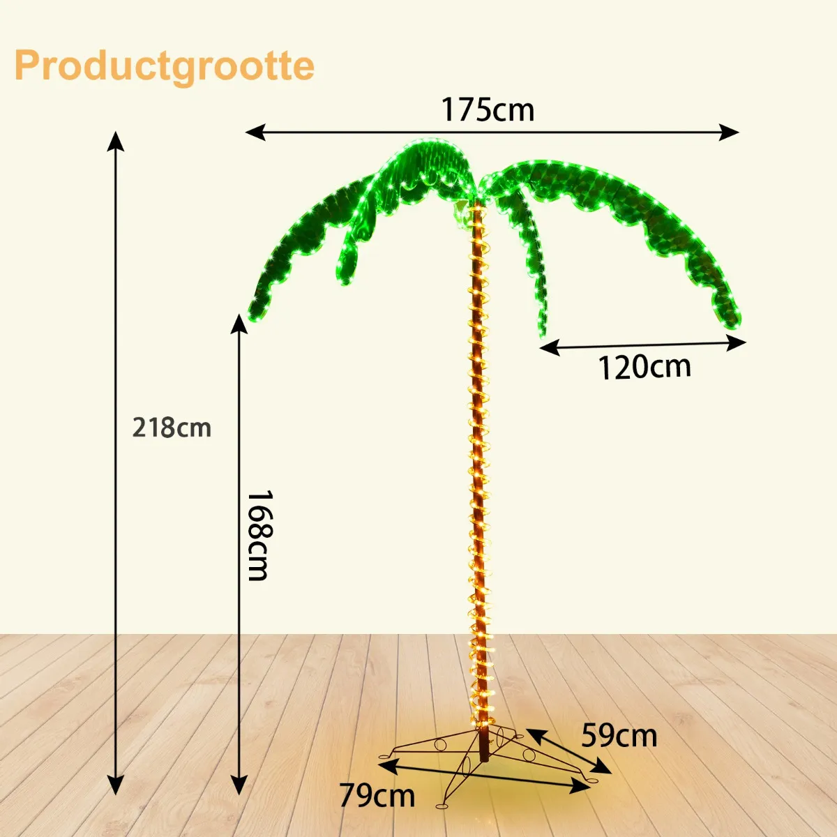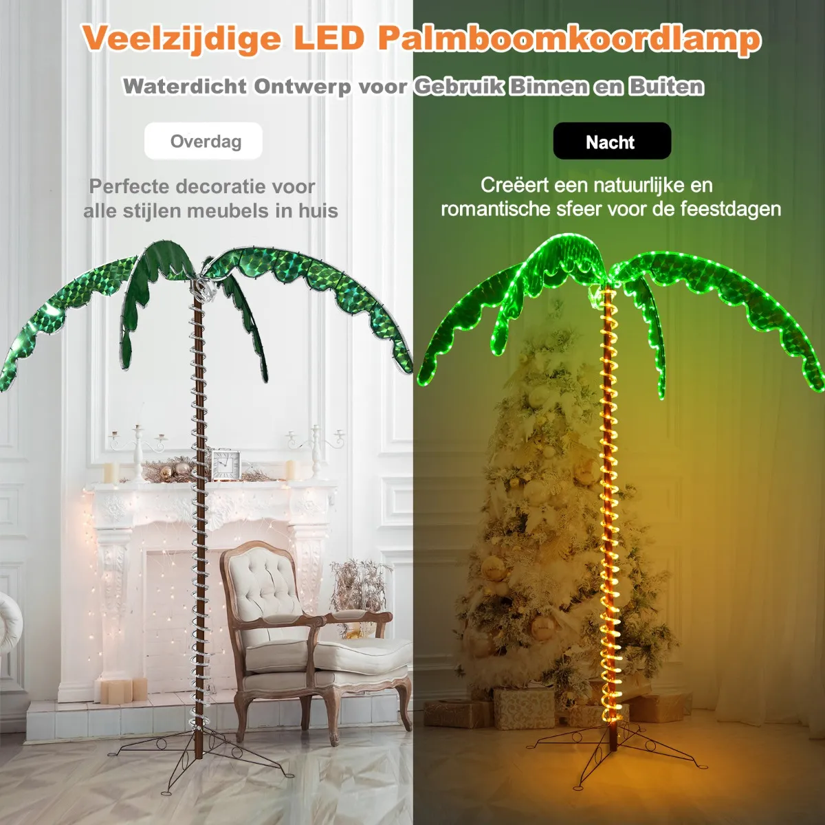 Bent u op zoek naar een stralende decoratie voor uw festival feestavond? Onze 136cm /168 cm kunstmatige palmboom zal een prachtige keuze voor u zijn. Deze aantrekkelijke kunstmatige palmboom kan zowel binnen als buiten worden gebruikt, en u kunt het in de woonkamer, de patio, het balkon en meer plaatsen. Plus, 5 m draad maakt de verbinding en beweging handiger. Versierd met warme LED-touw verlichting, zal deze palmboom met charmante uitstraling zorgen voor frisheid en geluk voor iedereen. Bovendien is het waterdichte materiaal gemakkelijk schoon te maken en zorgt het voor langdurig gebruik. Met duidelijke instructies en de benodigde onderdelen, is de installatie eenvoudig, wat u tijd en energie bespaart. Of het nu als huisdecoratie of als feest geluksboom is, onze LED touwlicht palmboom zal u niet teleurstellen.