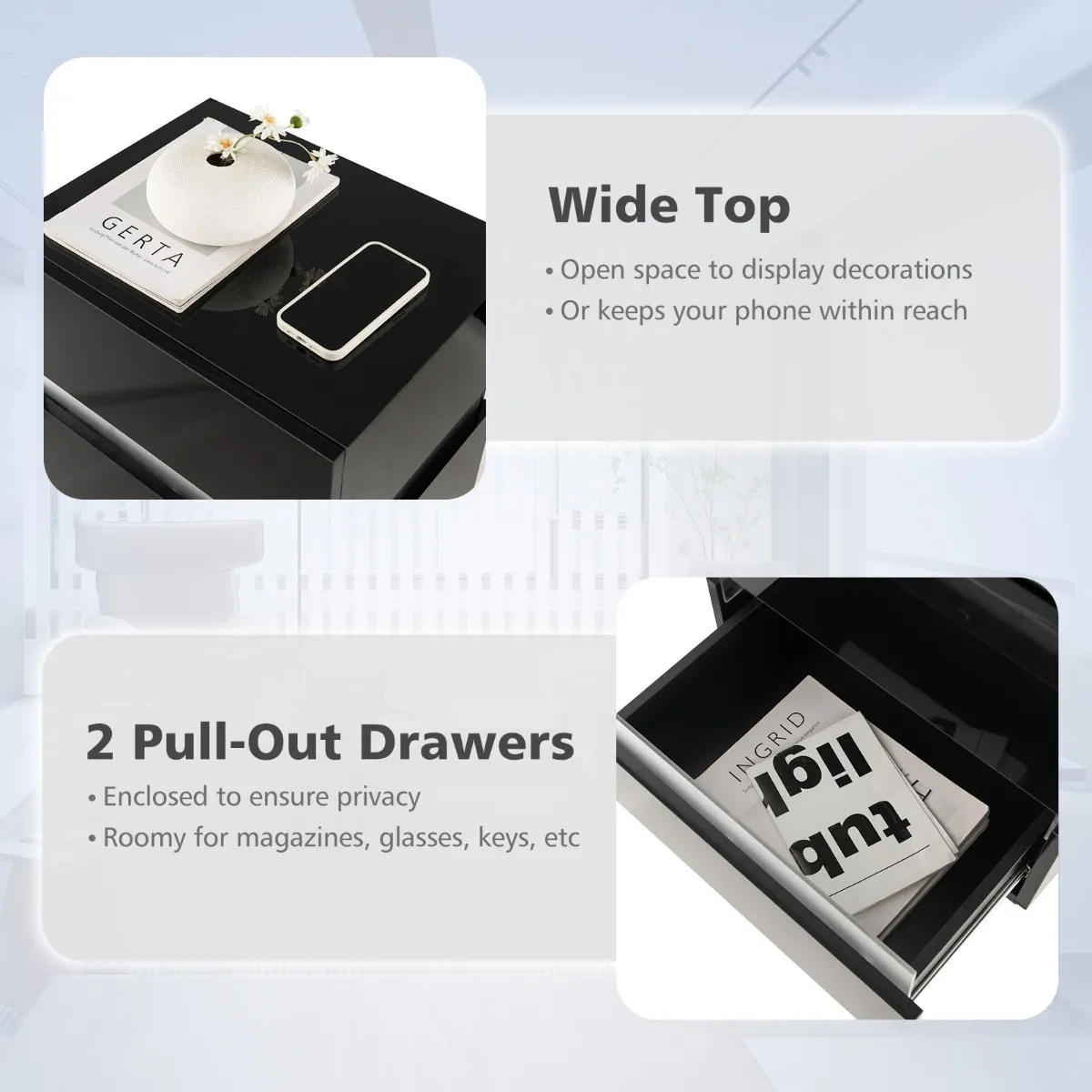 ÂVoldoende opbergruimte: Het nachtkastje heeft een brede lade om je spullen binnen handbereik te houden. Bovendien heeft het 2 schuiflades met metalen geleiders die soepel opengaan. Bovendien is er een opening voor kabelbeheer om kabels te ordenen.