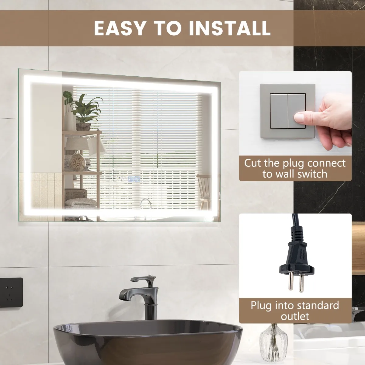 Deze wandspiegel voor de badkamer is niet alleen functioneel, maar voegt ook een vleugje elegantie toe aan je badkamerinrichting. De LED-verlichting is dimbaar en verkrijgbaar in 3 verschillende kleuren, en de geheugenfunctie zorgt ervoor dat je favoriete instellingen worden opgeslagen voor extra gemak. Met een geïntegreerd display voor tijd en temperatuur geeft deze badkamerspiegel nuttige informatie en voegt hij een modern tintje toe aan je badkamer. De aanraakbediening maakt hem gebruiksvriendelijk, zodat je eenvoudig de verlichting en instellingen kunt aanpassen. Hij wordt geleverd met alle nodige accessoires voor een eenvoudige installatie, of je hem nu in het stopcontact steekt of inbouwt.