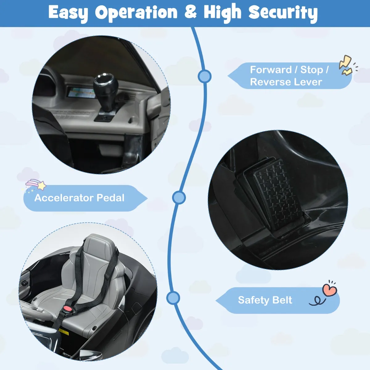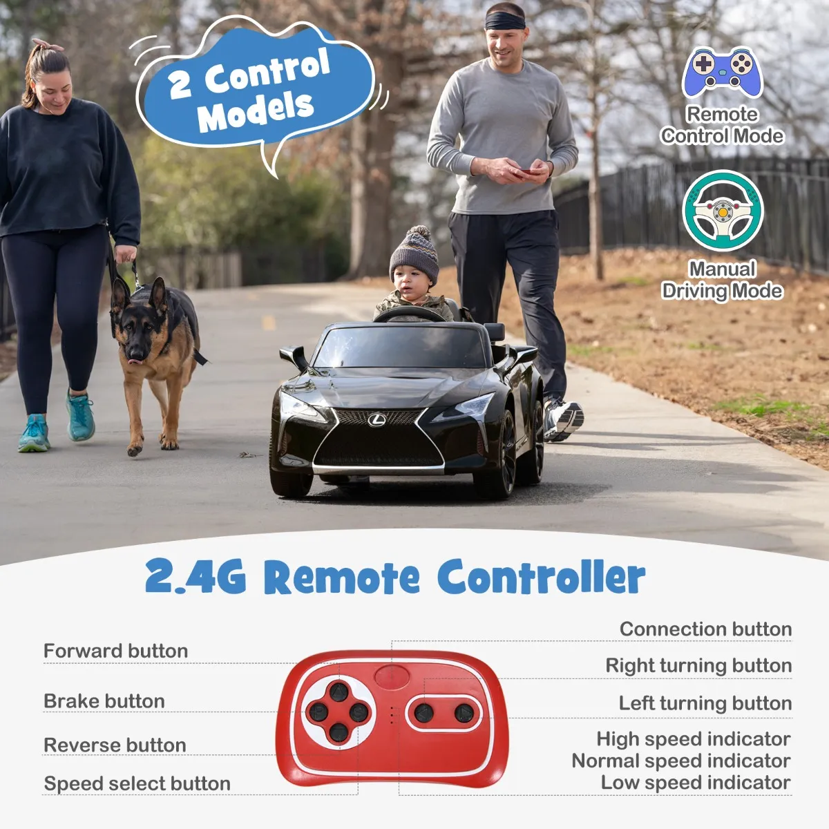 Deze Lexus LC500 gelicentieerde auto geeft je kinderen fantastisch rijplezier. Ouders kunnen de snelheid en het stuur bedienen via de 2,4G afstandsbediening voor extra veiligheid. Je kinderen kunnen hem handmatig bedienen met de versnellingspook en door op het pedaal te drukken. Verschillende ingebouwde muziekjes en verhaaltjes maken het rijden interessant. Hij is ontworpen met vering voor een soepele rit en slow-start technologie voor de veiligheid, en 4 anti-slip wielen voor bijna alle terreinen.