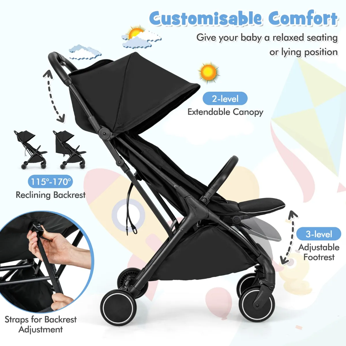 【Veelzijdig comfort】: Deze compacte kinderwagen heeft een verstelbare rugleuning die verstelbaar is van 115° tot 170°, zodat je baby ontspannen kan zitten of liggen. Met een in 3 standen verstelbare voetsteun biedt hij comfort op maat in elke groeifase van je baby.