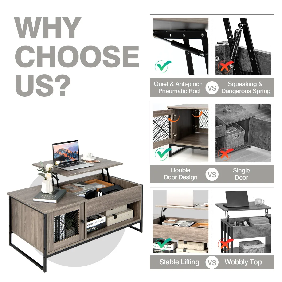 Lift top voor uw gemak: Met een hefblad dat omhoog en naar voren kan bewegen, kan de salontafel u dichterbij brengen, wat meer gemak brengt wanneer u een drankje wilt nemen of de laptop op de tafel wilt bekijken. Bovendien is er ook een vast tafelblad voor voorwerpen die u tijdens het tillen van het tafelblad verwijdert.