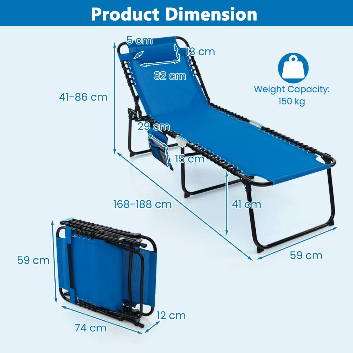 Verbeter je ontspanning buiten met deze terrasligstoel, die comfort en gemak biedt. Pas je ontspanning aan met de 4-voudig verstelbare rugleuning en verstelbare voetensteun, die zich aanpassen aan je gewenste houding. En je kunt hem opvouwen voor handig opbergen en meenemen. Gewikkeld in sneldrogende stof van hoge kwaliteit en vastgezet met sterke elastische koorden, is hij bestand tegen slijtage en bevordert hij de luchtcirculatie. Een zijvak en afneembare hoofdsteun verbeteren de functionaliteit en zorgen voor een aangename ontspanningservaring.