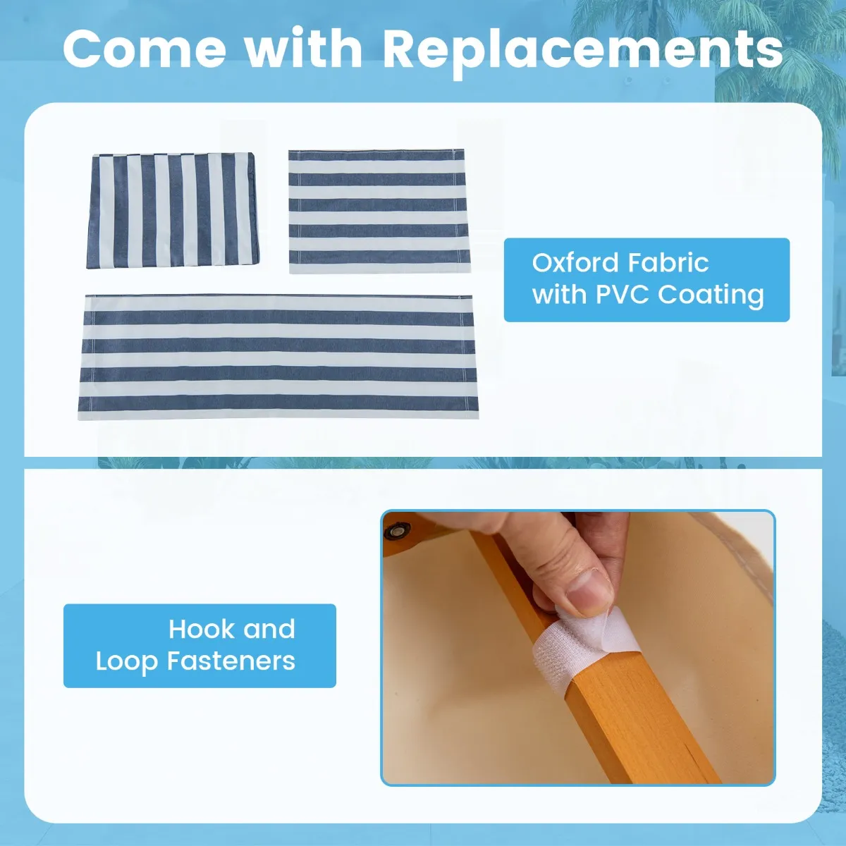Deze opvouwbare strandligstoel is gemaakt van betrouwbaar berkenhout en heeft een verstelbare luifel en rugleuning, zodat u hem kunt aanpassen aan uw behoeften om te zonnebaden, lezen of ontspannen in de buitenlucht. Oxfordstof van topkwaliteit garandeert langdurig comfort het hele jaar door. Wilt u het een nieuwe look geven, dan zijn er vervangende onderdelen verkrijgbaar. Dankzij het opvouwbare ontwerp is het eenvoudig te vervoeren naar diverse buitenruimtes. Dankzij de comfortabele armleuningen en een voetensteun biedt deze ligstoel optimale ontspanning en past hij perfect in elke buitenomgeving, of het nu op het terras, bij het zwembad, in de tuin of op het terras is.