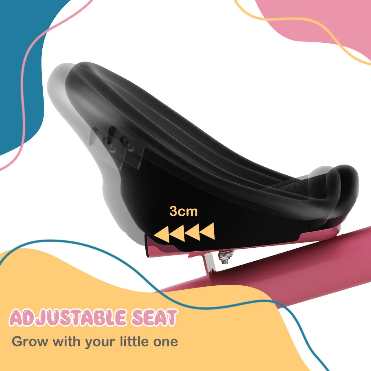 De 3 cm verstelbare zitting past zich aan de lichaamslengte van het kind aan