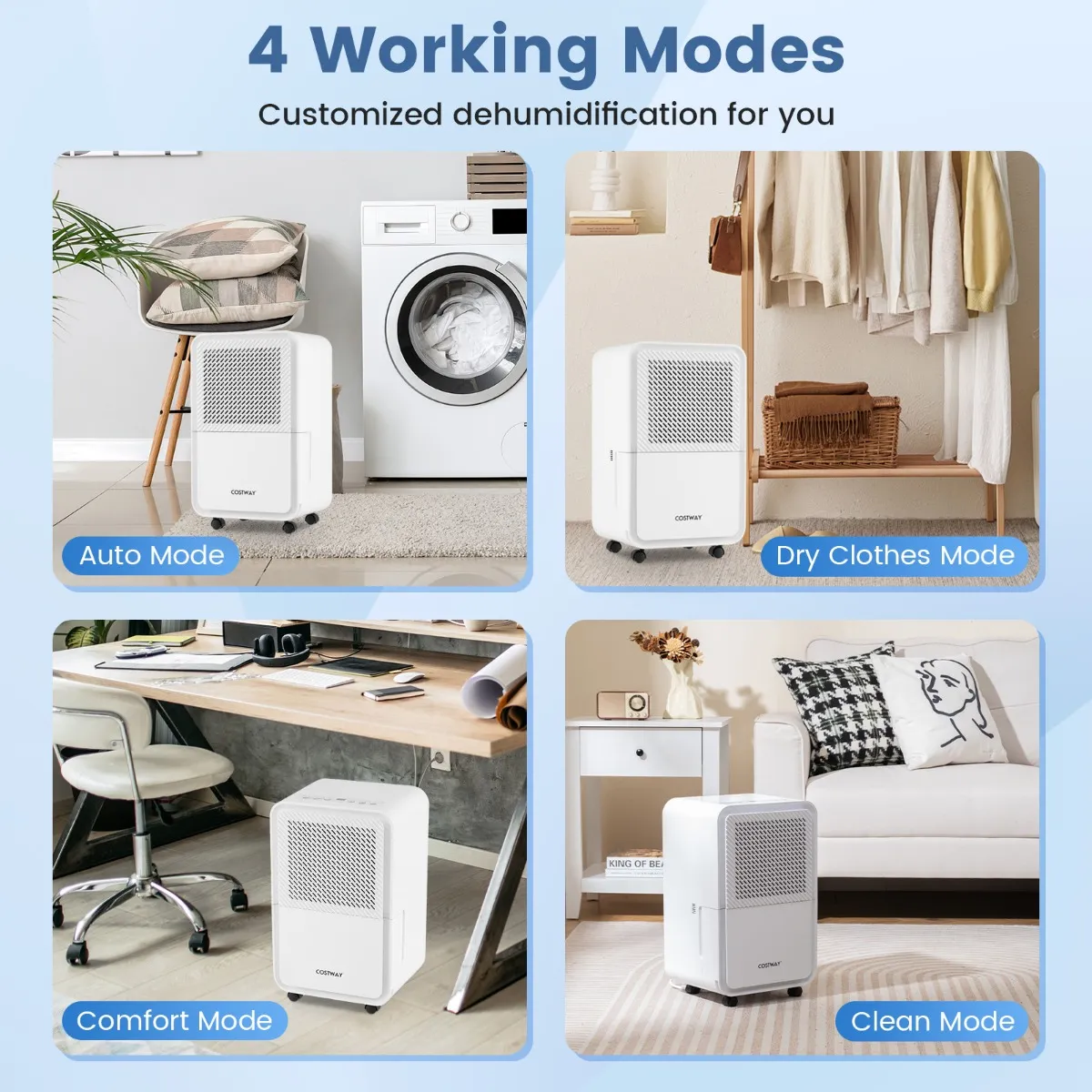 Zeer efficiënte ontvochtiging: Deze ontvochtiger verwijdert efficiënt tot 15 liter water per dag (35°C, 90% RH), waardoor hij ideaal is voor ruimtes tot 20 m². Bovendien heeft het 4 bedrijfsmodi: automatisch/wasdroging/comfort/reiniging, voor gepersonaliseerde ontvochtiging.