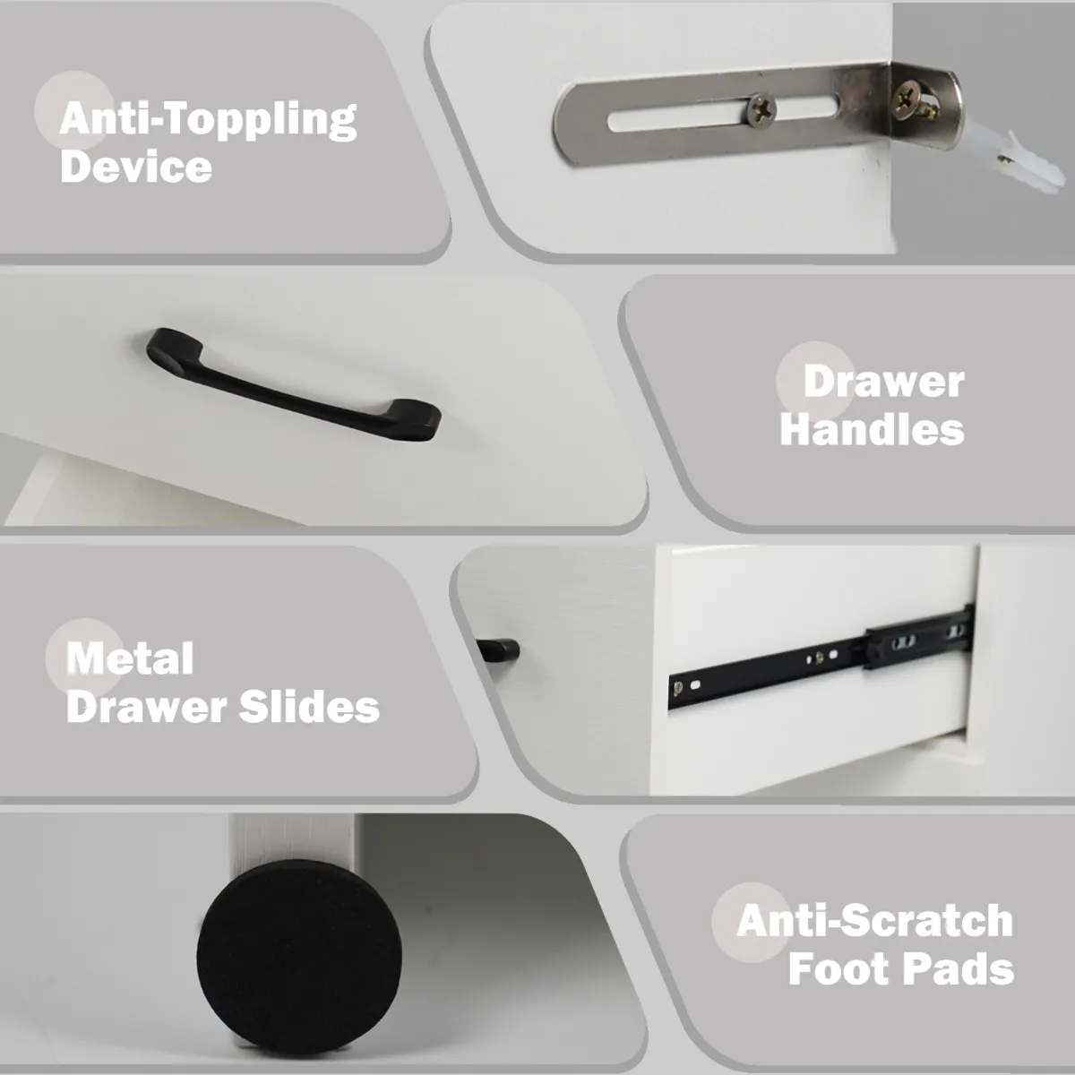 【Stevige, stabiele structuur】: Gemaakt van hoogwaardig MDF en spaanplaat, biedt deze make-up tafelset een stevige constructie. De lades zijn voorzien van metalen geleiders voor langdurig gebruik. Met de meegeleverde kantelbeveiliging kun je de tafel aan de muur bevestigen voor extra veiligheid.