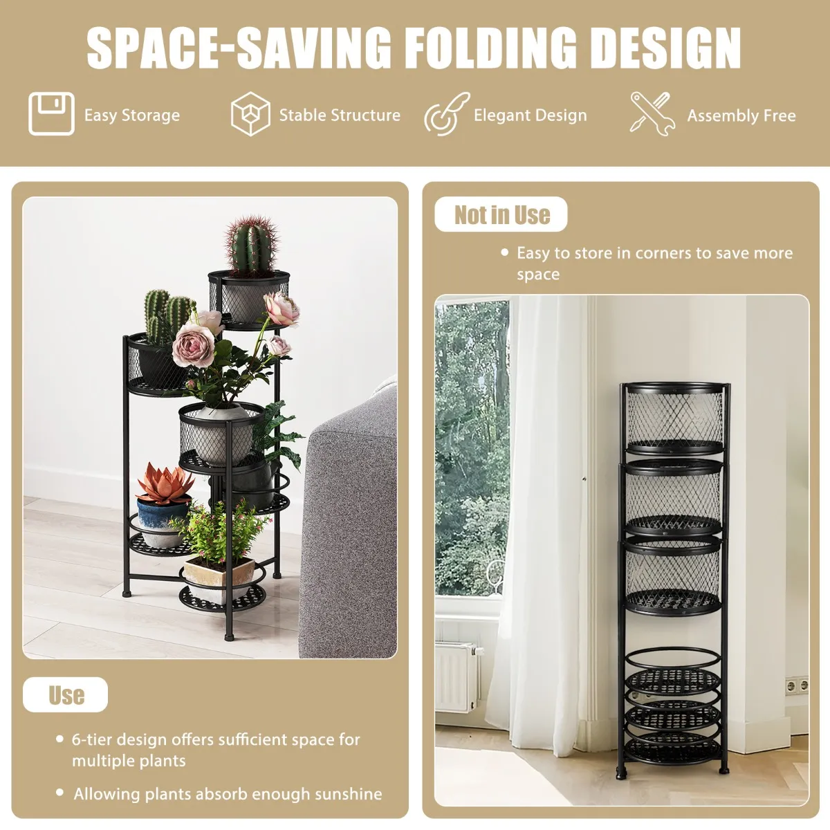 【Meerdere opmerkelijke details】: De grote potten en kleine roosterschalen van de plantenbak hebben verhoogde rails om te voorkomen dat de potten vallen. Bovendien is het holle bodempatroon goed voor drainage, wat de gezonde groei van planten kan bevorderen. En deze 6-laagse plantenbak is voorgemonteerd om je tijd en moeite te besparen.