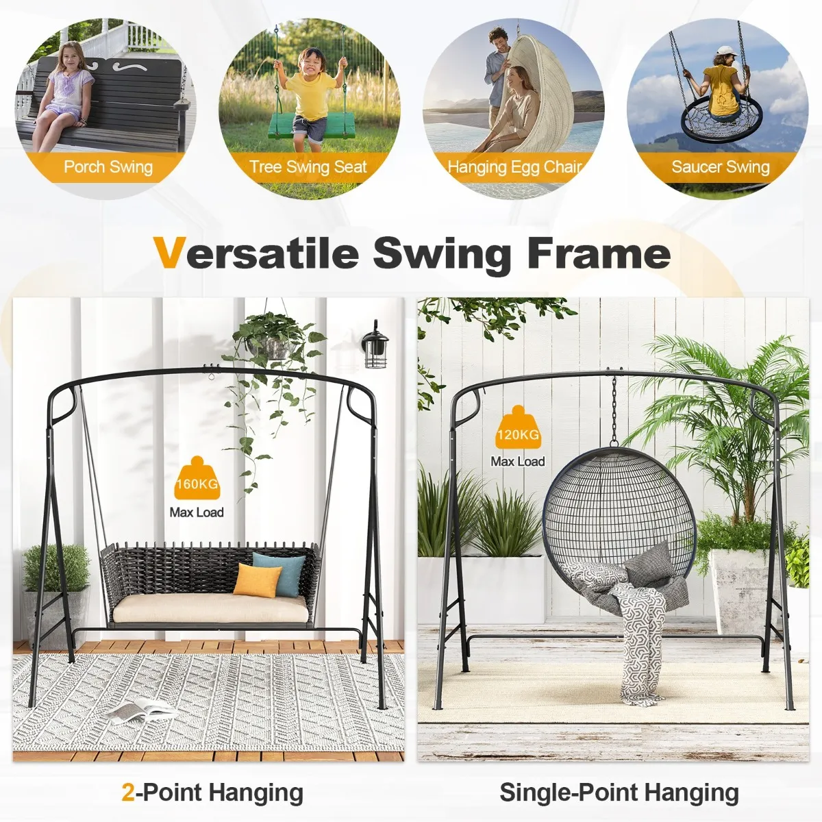 【Veelzijdig schommelframe】 Deze veranda schommelsteun biedt u 2 installatiewijzen: 2-punts ophanging of 1-punts ophanging. En het is geschikt voor verschillende soorten schommels, zoals een schommel, boomschommel, hangend zitje, schotelschommel.