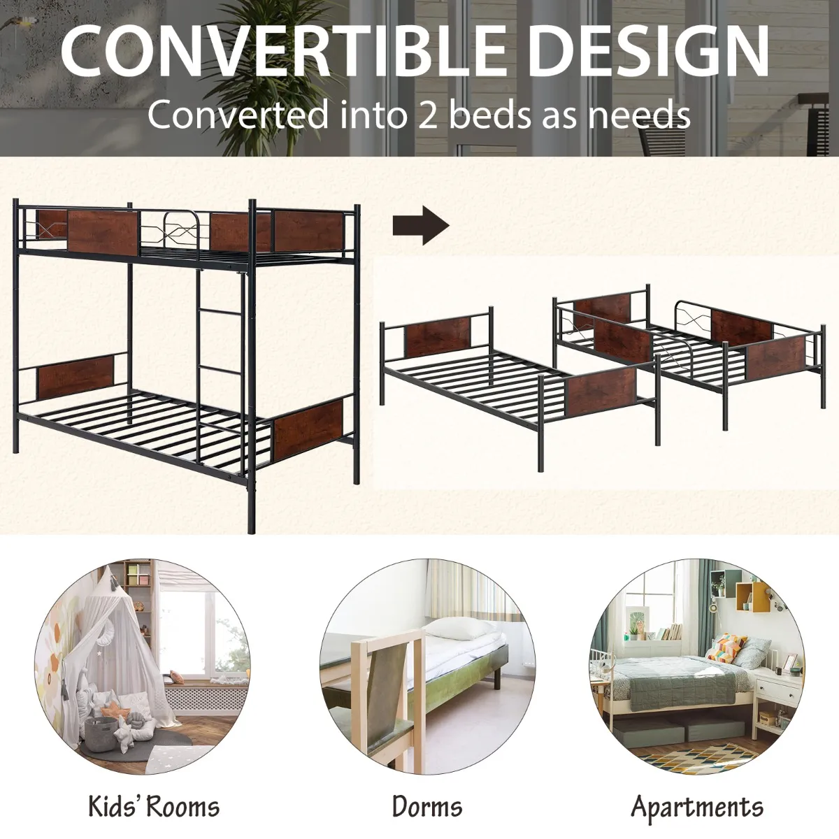 【2-in-1 converteerbaar ontwerp】 Het metalen bedframe bestaat uit 2 eenpersoonsbedden en een praktische ladder. Het is een ruimtebesparende keuze als je 2 slapers hebt maar weinig ruimte in de slaapkamer. Je kunt er ook voor kiezen om de middelste delen los te maken en het stapelbed te veranderen in 2 eenpersoonsbedframes.