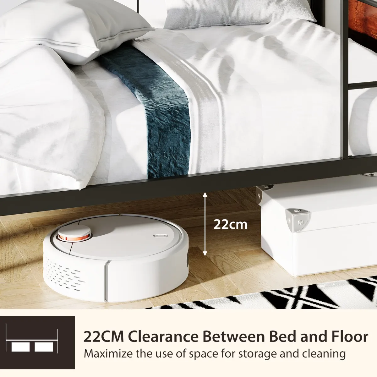 【Opbergruimte onder het bed】 Het bedframe maximaliseert het gebruik van verticale ruimte, omdat het onderste bed 22 cm van de vloer staat, waardoor er veel ruimte overblijft voor opbergruimte. Je kunt seizoensgebonden spullen onder het bed opbergen om de slaapkamer schoon te houden. Bovendien kan de robotstofzuiger er gemakkelijk doorheen om schoon te maken.