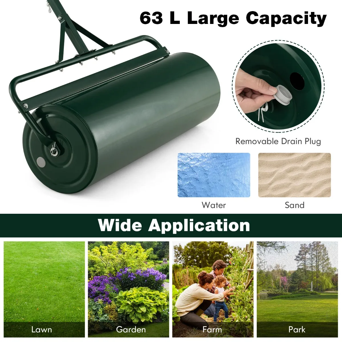 Grote capaciteit: Deze metalen gazonroller is ontworpen met een cilinder met grote capaciteit tot 63 liter (water/zand). En door zijn eigen gewicht toe te voegen, helpt de gazonwals u uw werk efficiënter uit te voeren. Bovendien is er een verwijderbare aftapplug voor eenvoudig vullen of legen.