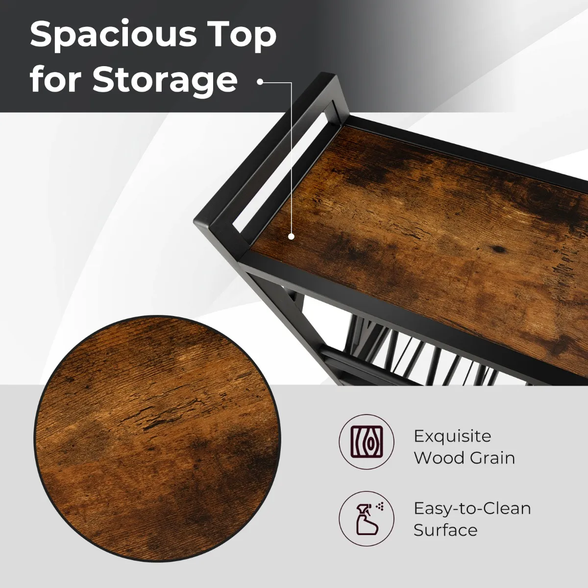 Veilig en betrouwbaar metalen frame: Hoogwaardige metalen buizen zorgen voor een hoge sterkte en een lange levensduur, zodat het tijdens het gebruik niet gemakkelijk wiebelt. Daarnaast beschermt het anti-valontwerp aan beide zijden van de bovenste plank je voorwerpen tegen vallen.