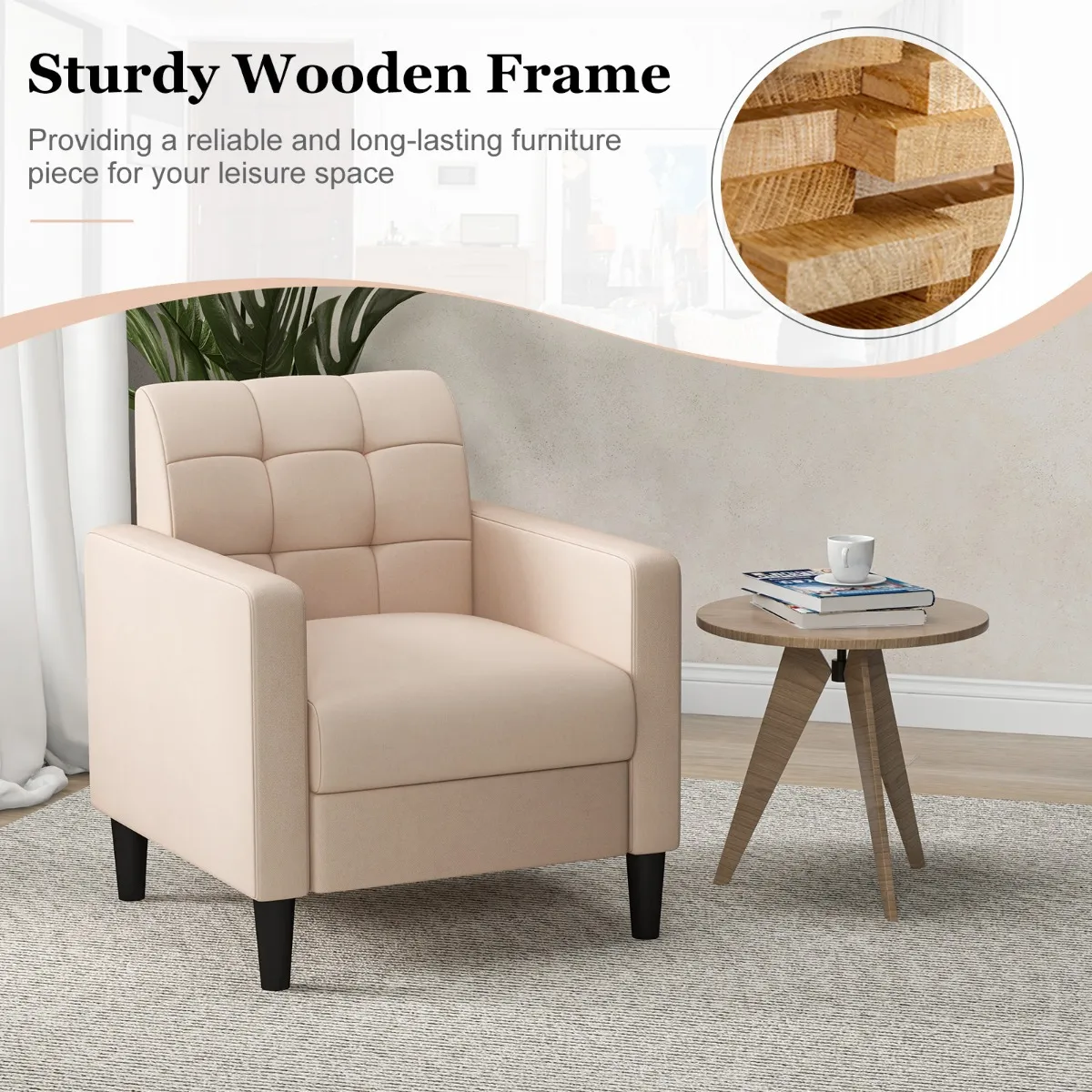 Veelzijdige toepassing:Â De woonkamerstoel heeft comfortabele armleuningen zodat je in een ontspannen houding kunt zitten. Het is de perfecte metgezel voor diverse activiteiten zoals lezen, tv kijken en praten met bezoekers.