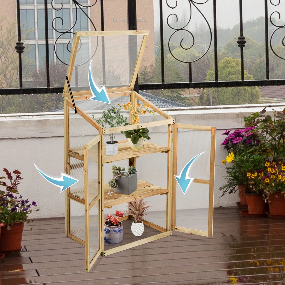 【Goede ventilatie】Voorzien van 2 deuren met grendels, staat deze houten serre uw planten toe om bij geschikte temperaturen te groeien en verhindert effectief de massieve vervelende indringer om elke bloem te ruïneren. En de openklapbare bovenkant met flexibele ondersteunende scharnier biedt groot gemak om uw planten eruit te halen.