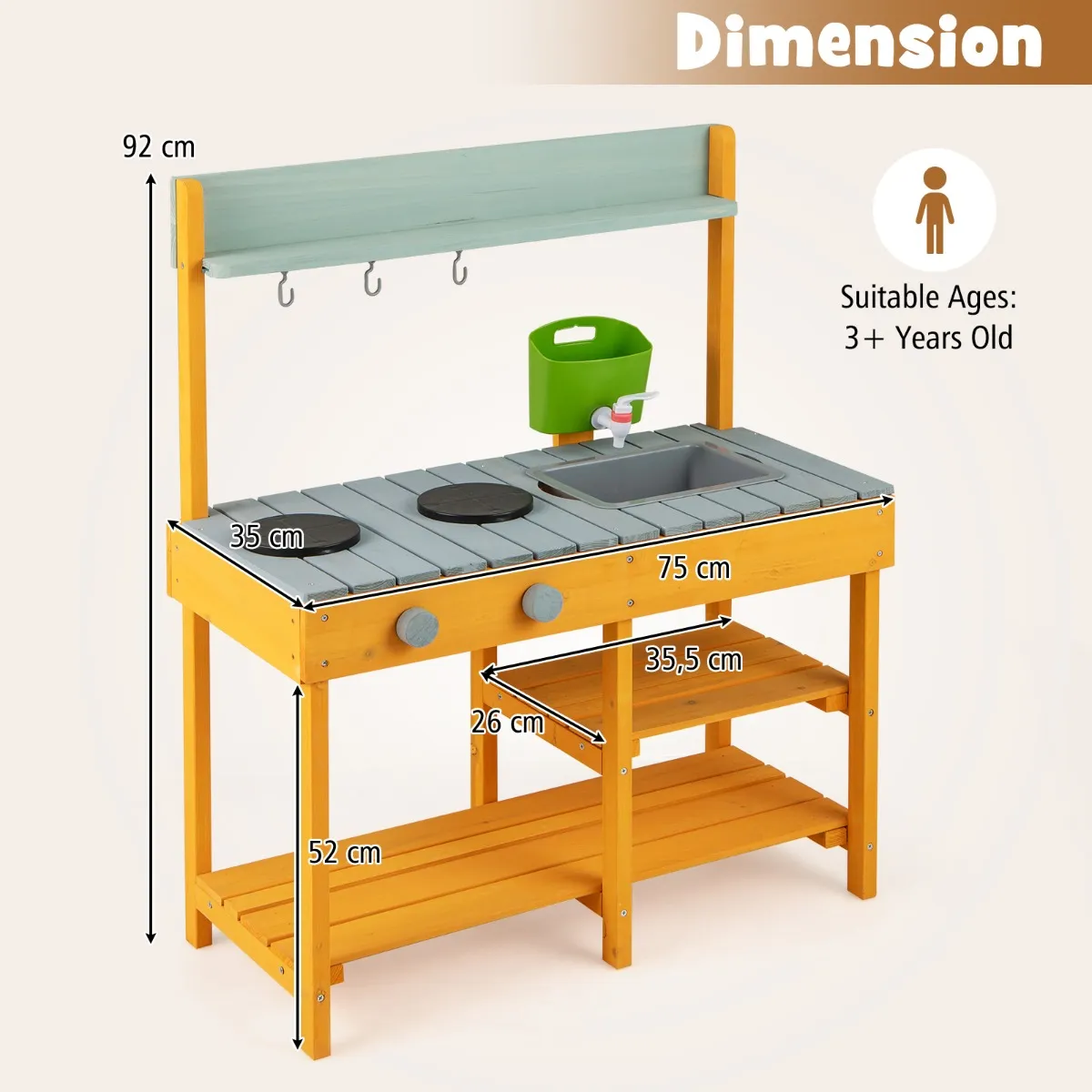 【Kindervriendelijk massief hout】: Geselecteerd dennenhoutmateriaal garandeert grote robuustheid en uitstekende duurzaamheid. Ondersteund door 4 stabiele poten blijft onze modderkeuken stabiel en wiebelt niet zo gemakkelijk. Ronde hoeken voorkomen stoten.
