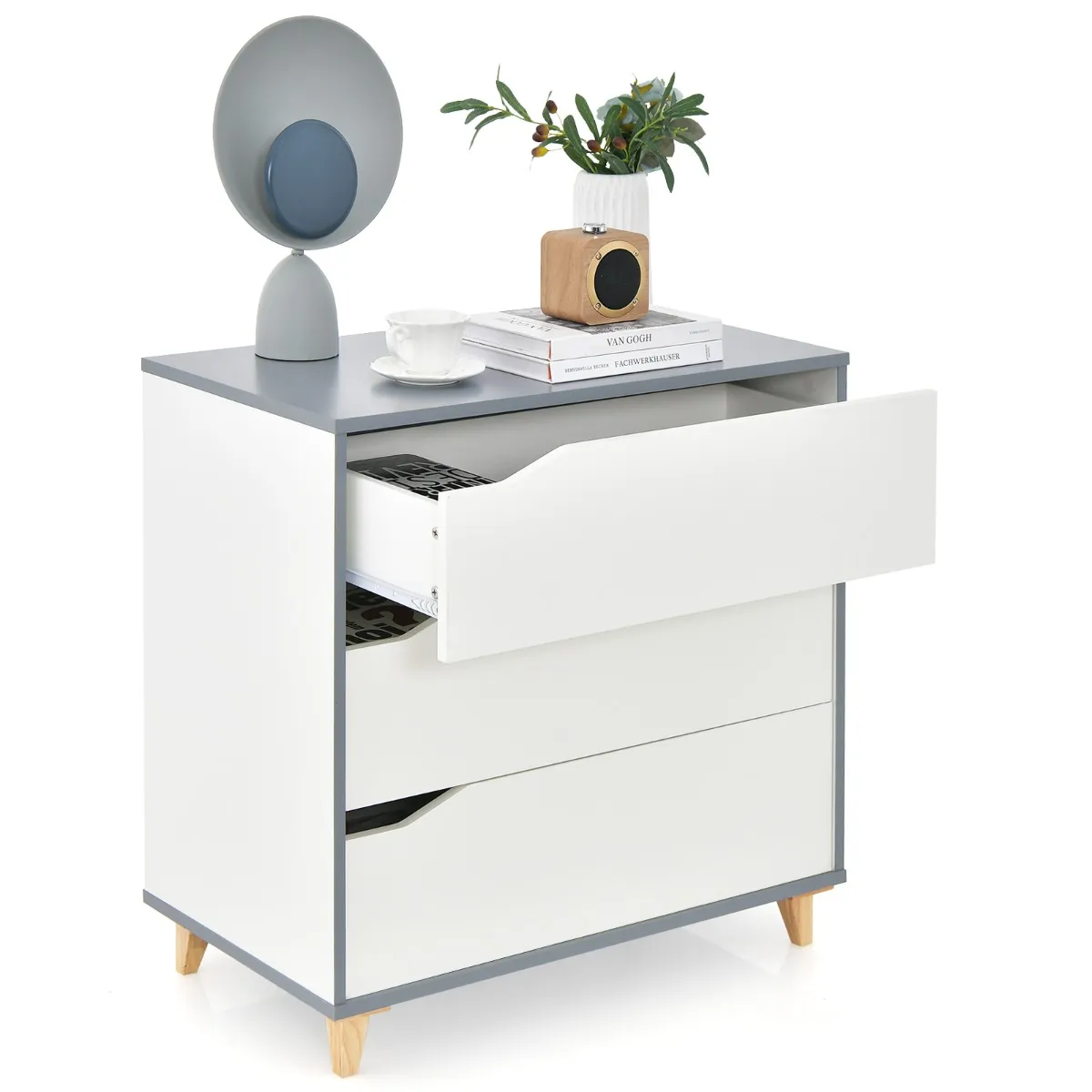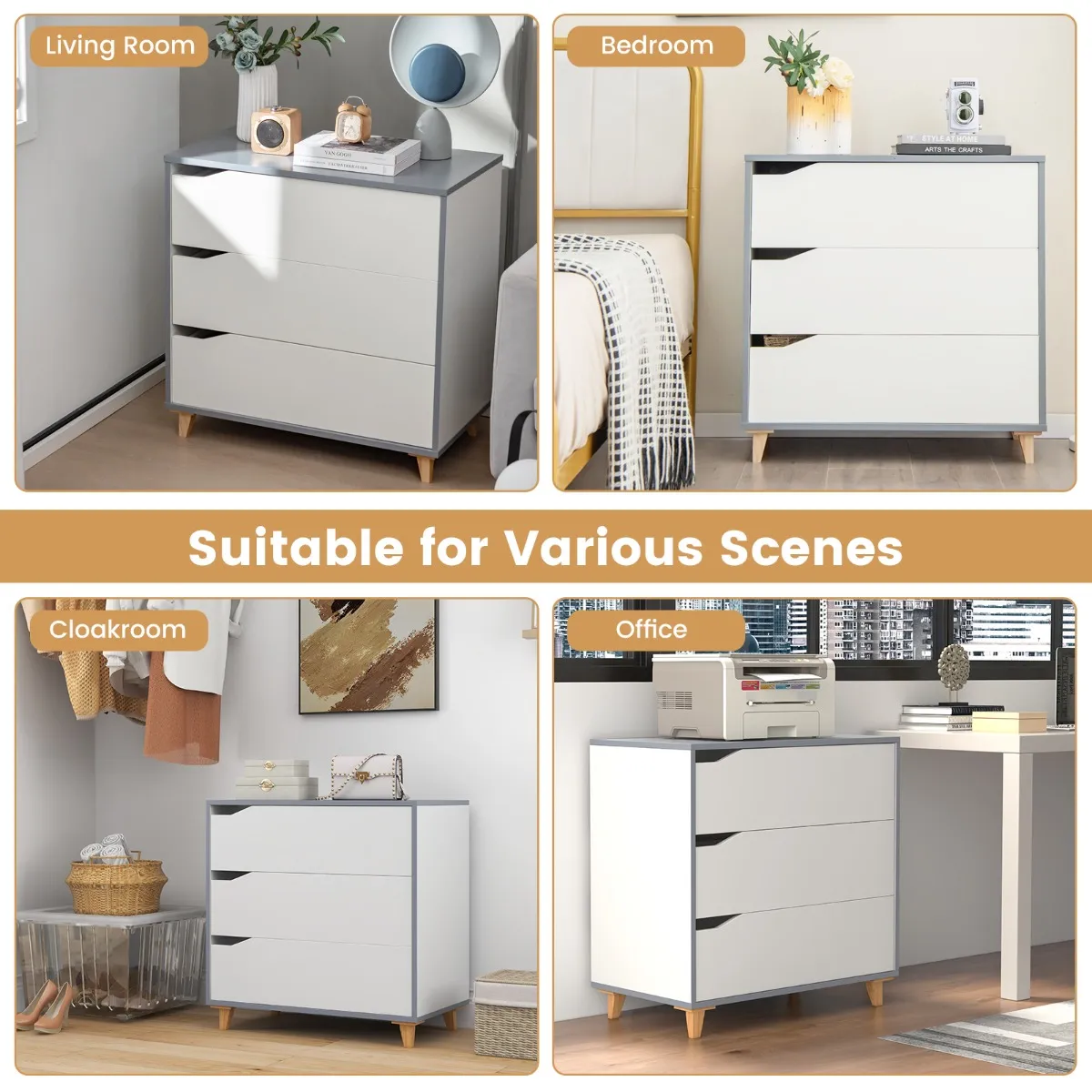 Onze veelzijdige kledingkast met 3 lades heeft veel opbergruimte om al je kleren, dekens, handdoeken en speelgoed netjes en georganiseerd op te bergen. Hij is perfect voor de woonkamer, slaapkamer, garderobe of kantoor. Het strakke, moderne ontwerp voegt een vleugje elegantie toe aan elke kamer en verbetert je interieur. Hij is voorzien van een anti-kantelfunctie en stevige poten voor stabiliteit en duurzaamheid, waardoor hij een veilige ruimte creëert voor jonge kinderen en huisdieren.