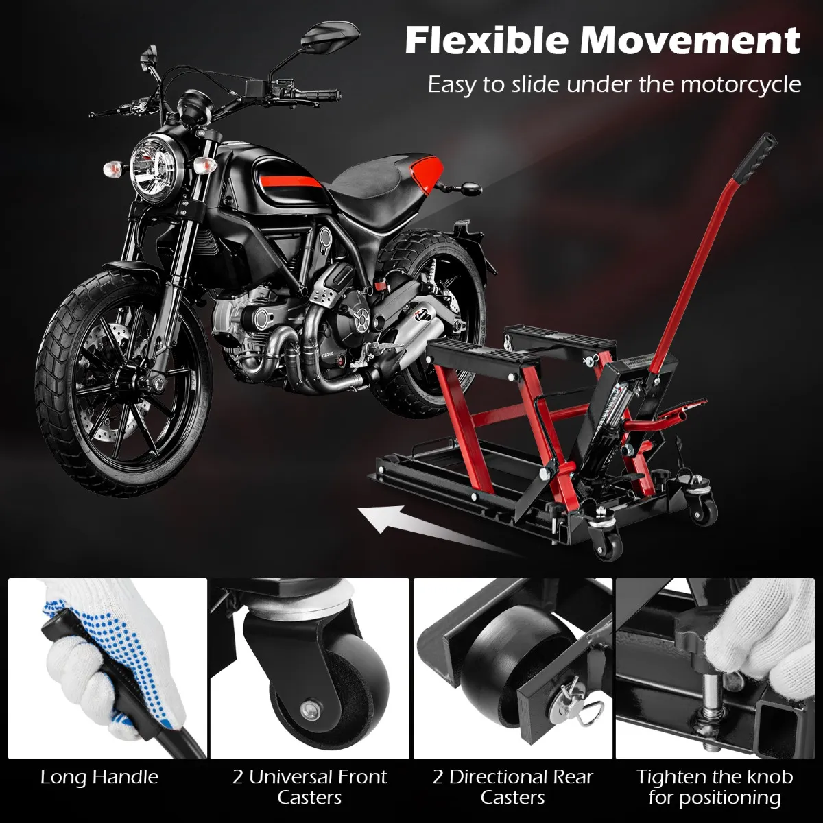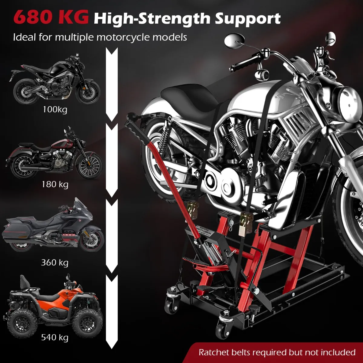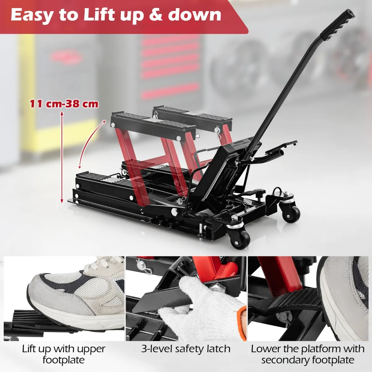 Deze hefbrug is perfect voor motorfietsen, terreinvoertuigen, dirtbikes enz. Hij beschikt over een versterkt metalen frame en een geavanceerd hydraulisch systeem, dat een zacht en stabiel optillen van 12 cm tot 38,5 cm mogelijk maakt. Bovendien is deze motorstandaard met een eenvoudig voetplaatmechanisme gemakkelijk te bedienen en beschikt hij over wendbare wielen voor moeiteloos positioneren. Dit hefmechanisme is ideaal voor doe-het-zelvers en professionele werkplaatsen en verhoogt de veiligheid en efficiëntie in elke omgeving. Verbeter je voertuigverzorgingsroutine met deze veelzijdige en betrouwbare motorfietslift.