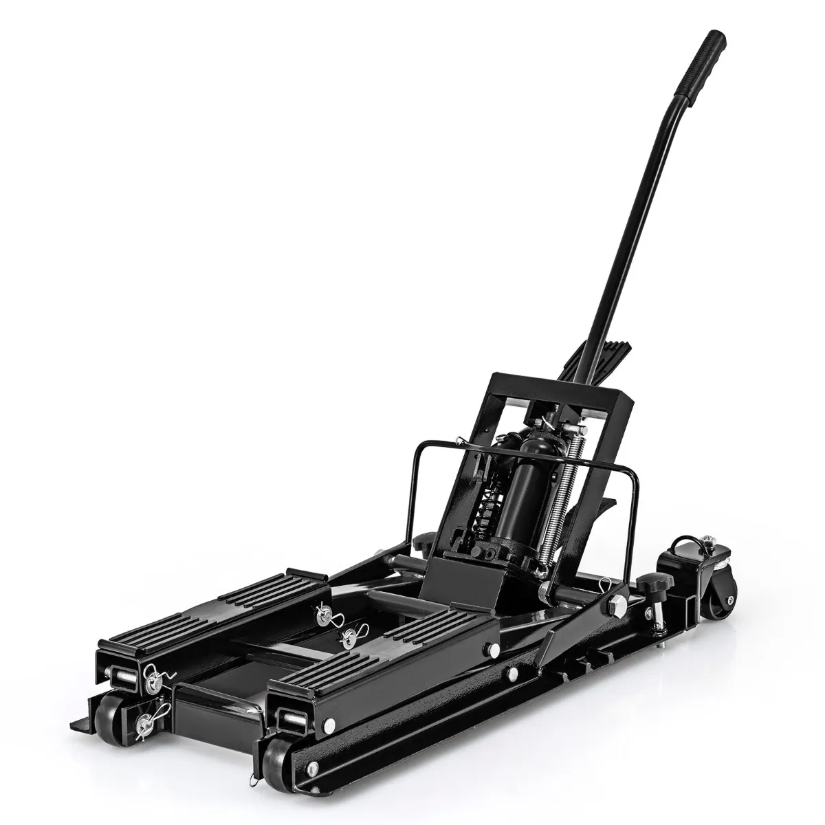 【Gemakkelijk te verplaatsen en te stoppen】: Het manoeuvreren van deze krik is moeiteloos met 2 vaste achterwielen en 2 draaibare voorwielen en een lange handgreep voor betere controle. En je kunt hem door het aantrekken van de knoppen stevig positioneren.