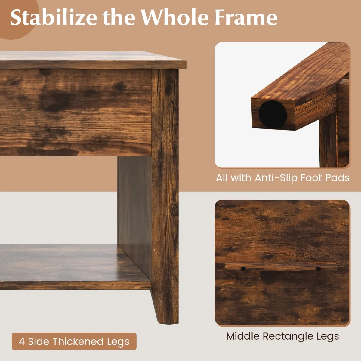 Dan heeft u een kwalitatief hoogwaardige salontafel nodig met voldoende opbergruimte in uw woonkamer. Dit is een nieuwe salontafel, met een blad dat op en neer kan worden getild tot verschillende hoogtes voor meerdere functies. Onder het blad is er een verborgen opbergruimte voor uw dagelijkse voorwerpen, zoals boeken, tijdschriften, gamecontrollers en afstandsbedieningen. Bovendien zijn er drie open planken aan de onderkant, die aan uw verzamelbehoeften voldoen en het ruimtegebruik verbeteren. Deze salontafel met een speciaal ontwerp zal niet uw verkeerde keuze zijn. Aarzel niet meer. Kom tot aankoop!