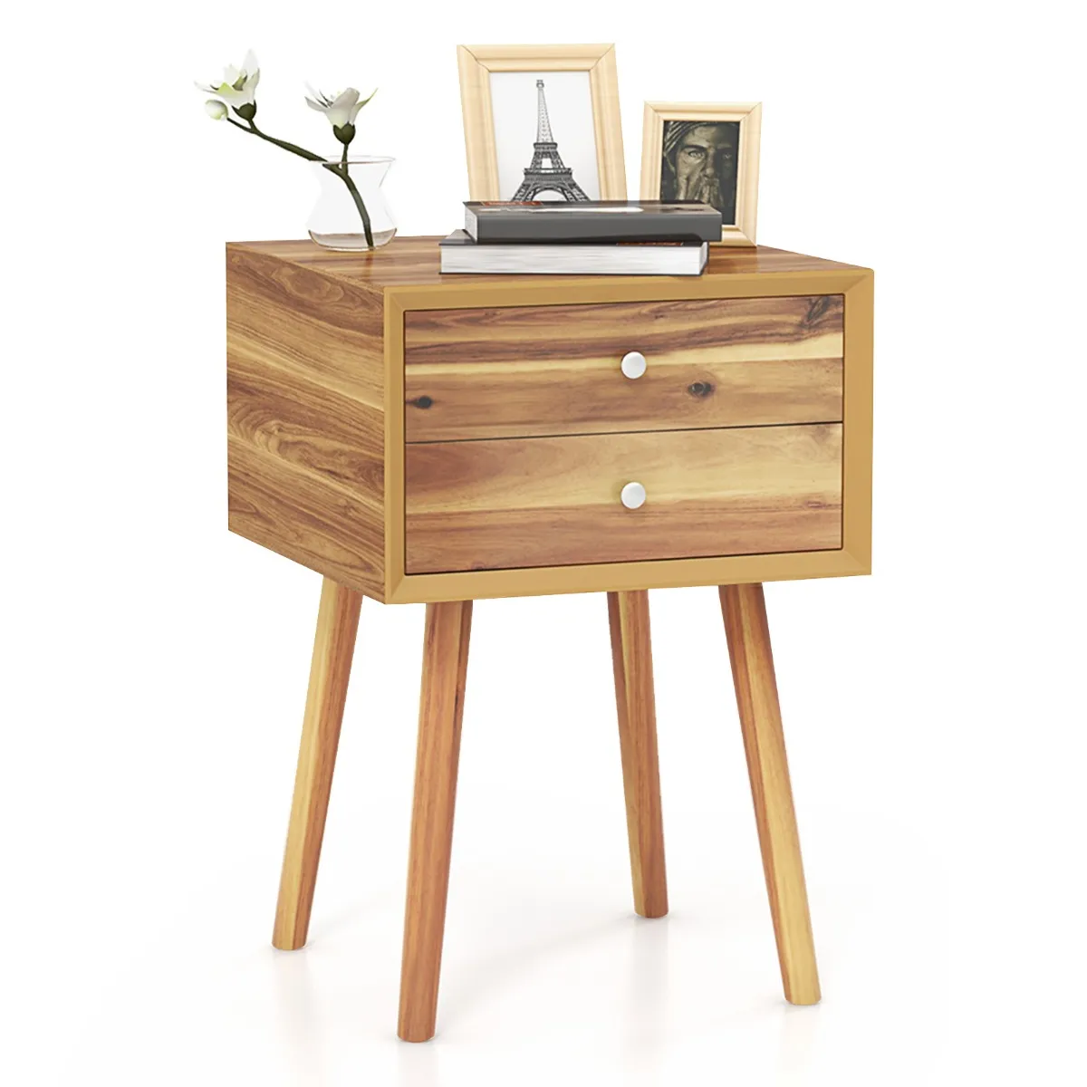 Voldoende opbergruimte: Dit houten nachtkastje biedt een leuke opbergoplossing voor je slaapkamer. Twee grote laden zijn praktisch voor het opbergen van je boeken, afstandsbedieningen of andere persoonlijke voorwerpen. En het brede tafelblad biedt ruimte voor fotolijsten of decoratieve voorwerpen.