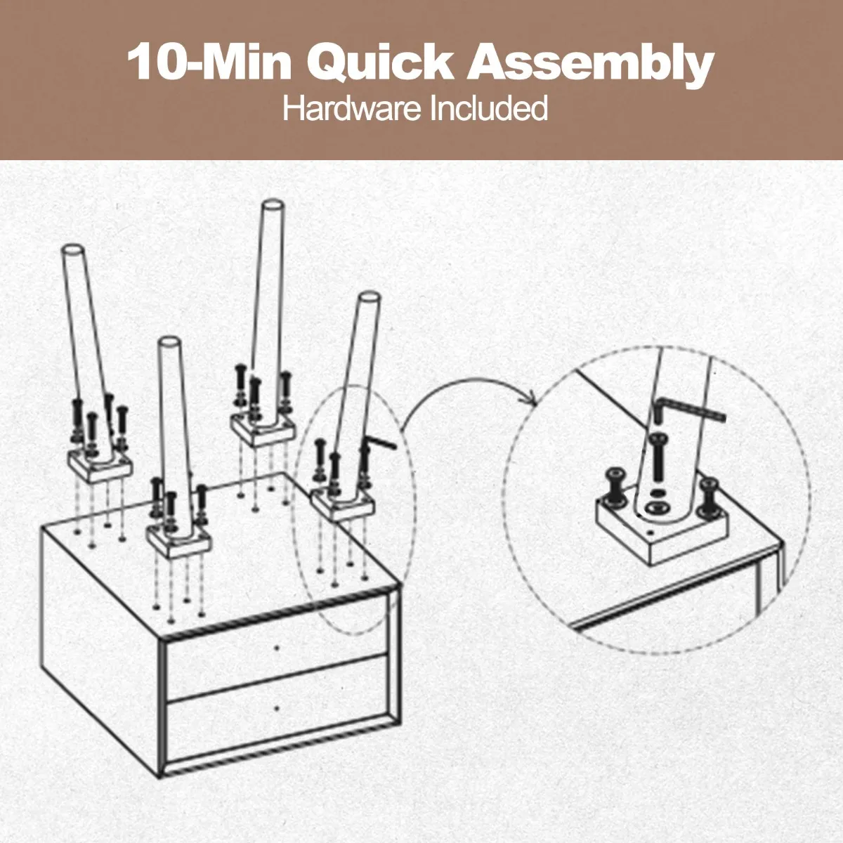 Verhoogde steunpoten: De poten van deze kleine bijzettafel zijn 35 cm hoog, zodat je je geen zorgen meer hoeft te maken dat de ruimte onder de meubels een moeilijk te reinigen plaats in je huis wordt. Je kunt de vloer onder de kast probleemloos reinigen of een robotstofzuiger eronder laten rijden.