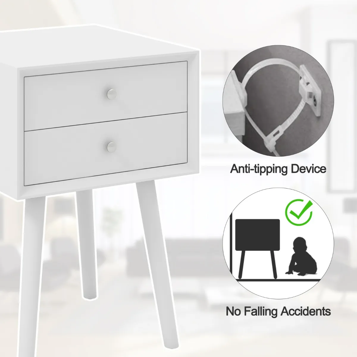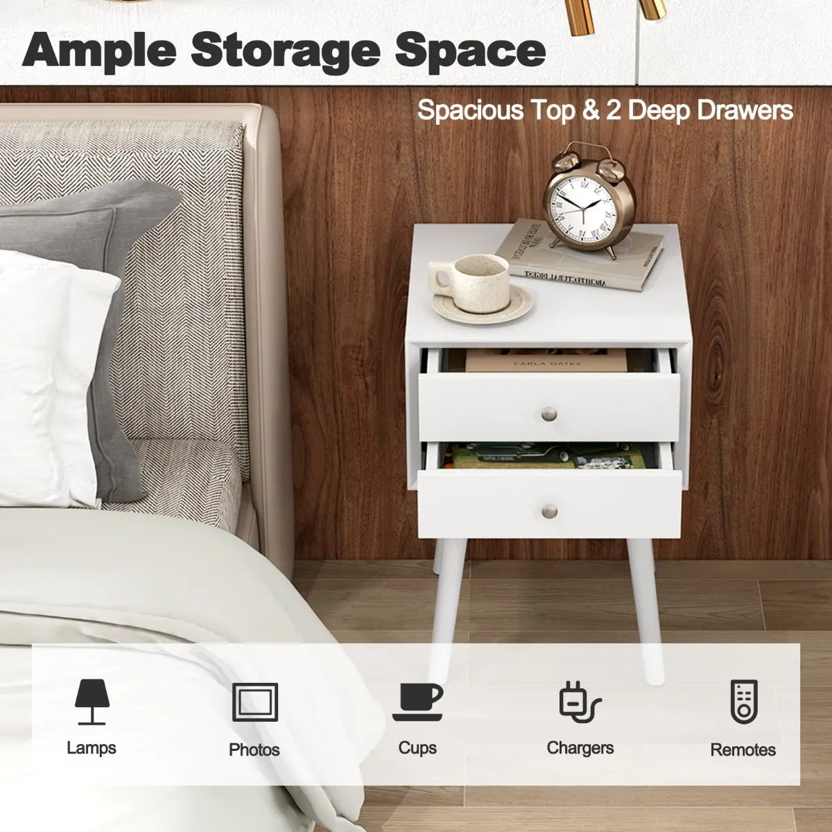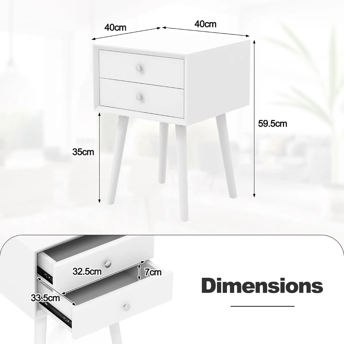 Nachtkastje Met 2 Laden Modern Nachtkastje Met Opbergruimte Klein Nachtkastje Op De Vloer Houten Bijzettafel-Wit