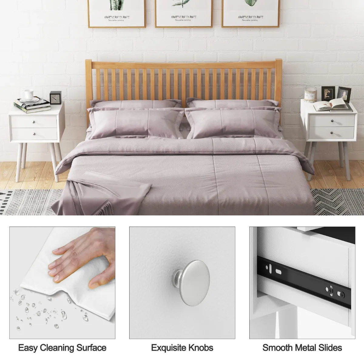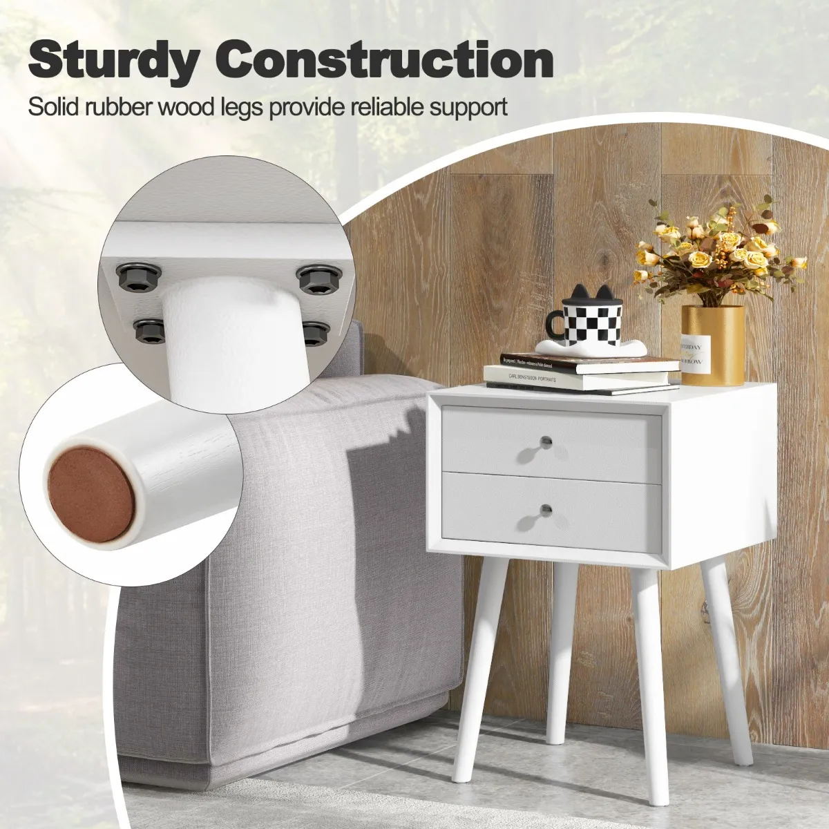 Nachtkastje Bijzettafeltje Met 2 Laden En Massief Rubber Houten Poten Voor Slaapkamer Woonkamer En Ontvangstkamer Wit