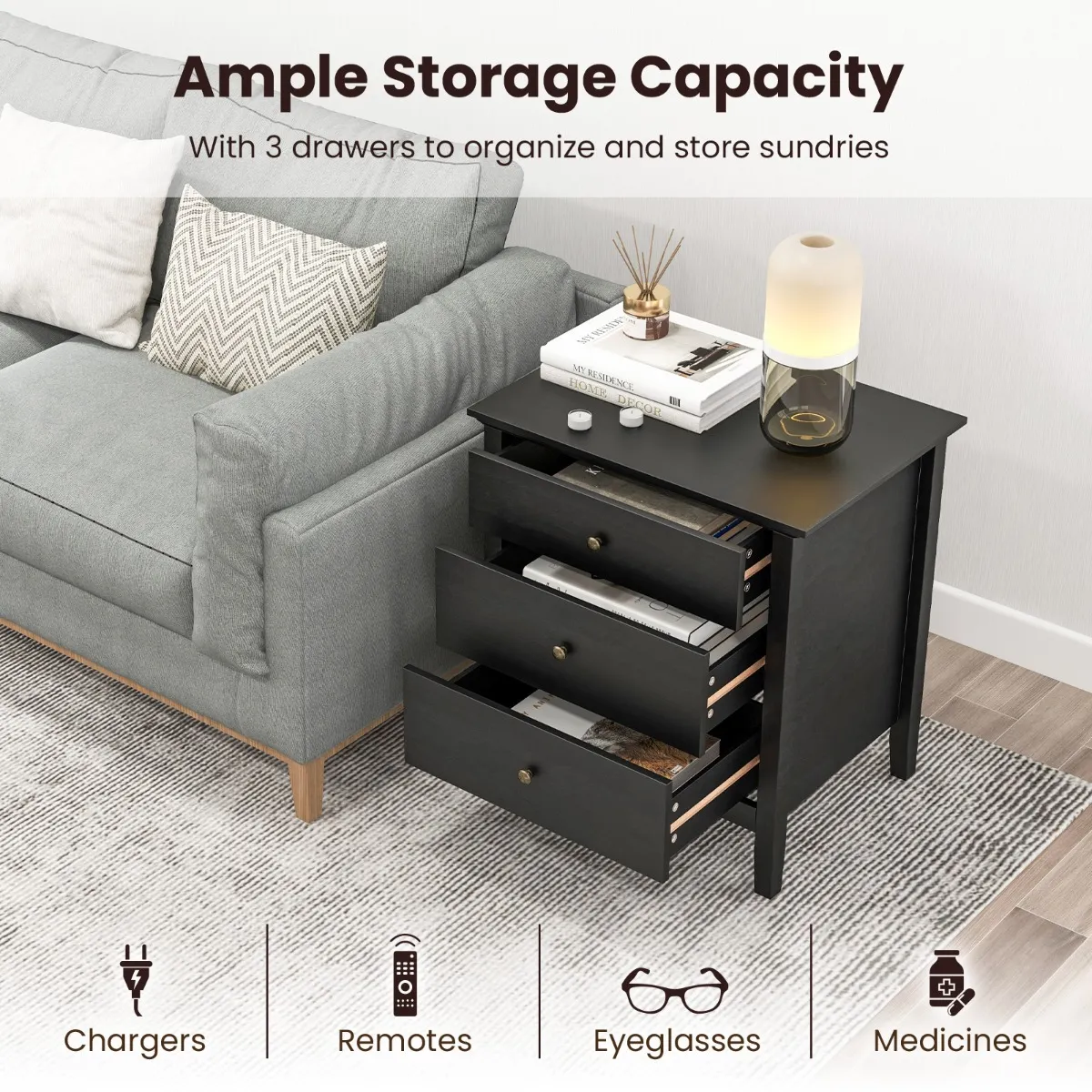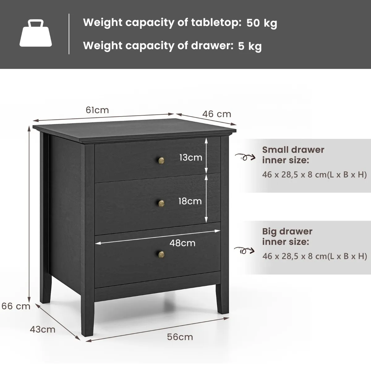 Organiseer uw ruimte in stijl:Â Geniet van het gemak om alles binnen handbereik te hebben! Het praktische nachtkastje heeft 3 diepe lades en een ruim tafelblad om lampen, glazen, opladers en andere slaapkamerbenodigdheden netjes te ordenen.