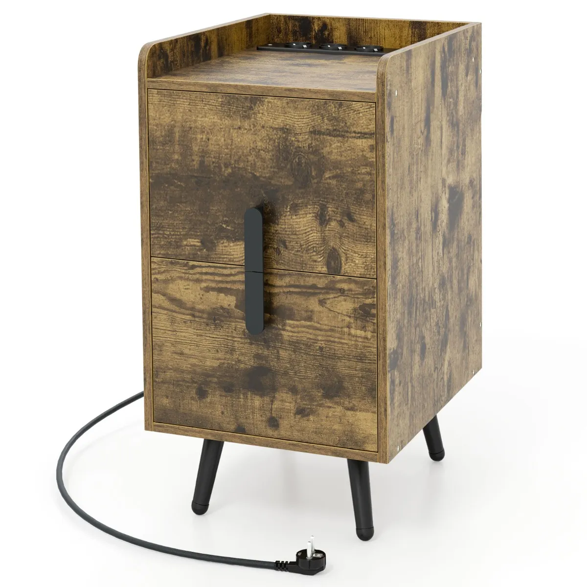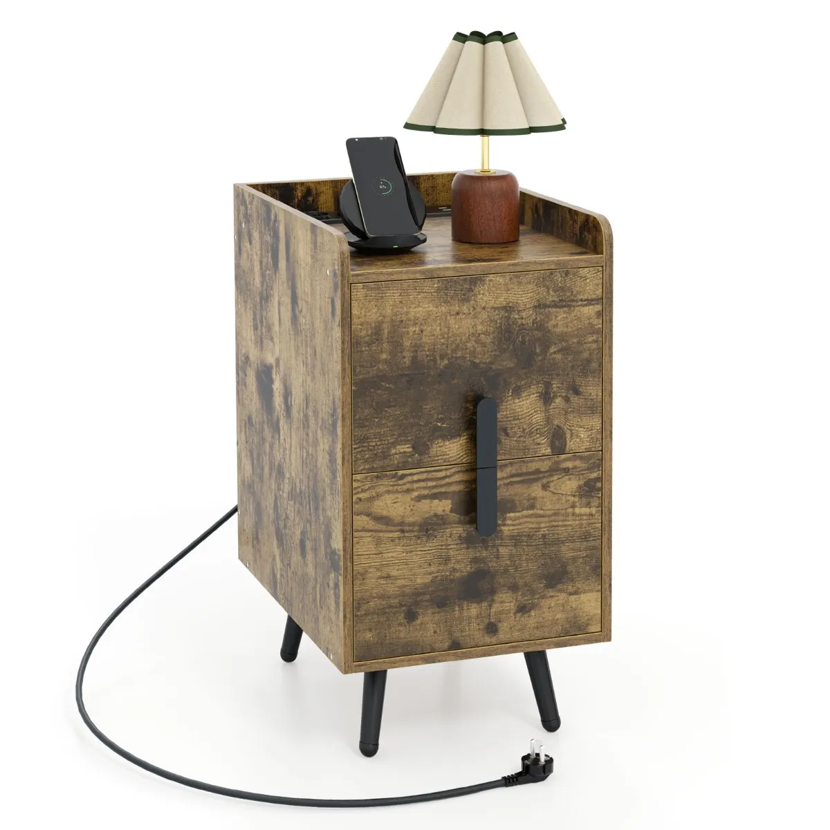 Laad meerdere apparaten tegelijk op: Dit nachtkastje met geïntegreerde oplaadplank geeft je een handige nieuwe manier van leven. Het oplaadstation heeft drie 125 V stopcontacten en twee USB-laadpoorten, zodat je gemakkelijk je telefoon, tablet en andere elektronische apparaten kunt opladen.