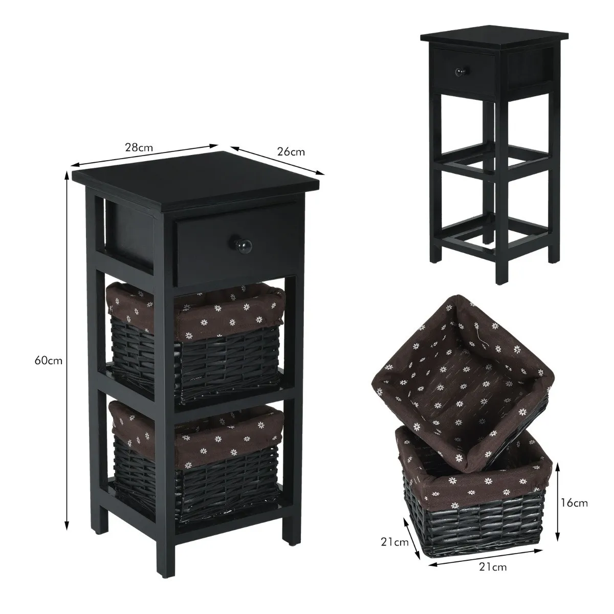 【Voldoende opbergruimte】Een nachtkastje van 3 verdiepingen kan u een grote opbergruimte bieden. U kunt boeken, cosmetica, ongebruikte items en andere items die geen plaats hebben om ze te plaatsen. 1 lade en 2 uitneembare manden helpen u om dingen goed te organiseren en maken uw leven gemakkelijker.