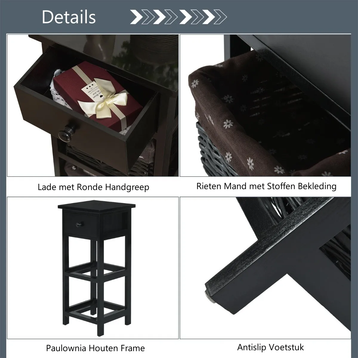 - Mandje afmeting: 21x 21 x 16 cm Pakket omvat:1 x 3-Laags houten nachtkastje1 x Instructie