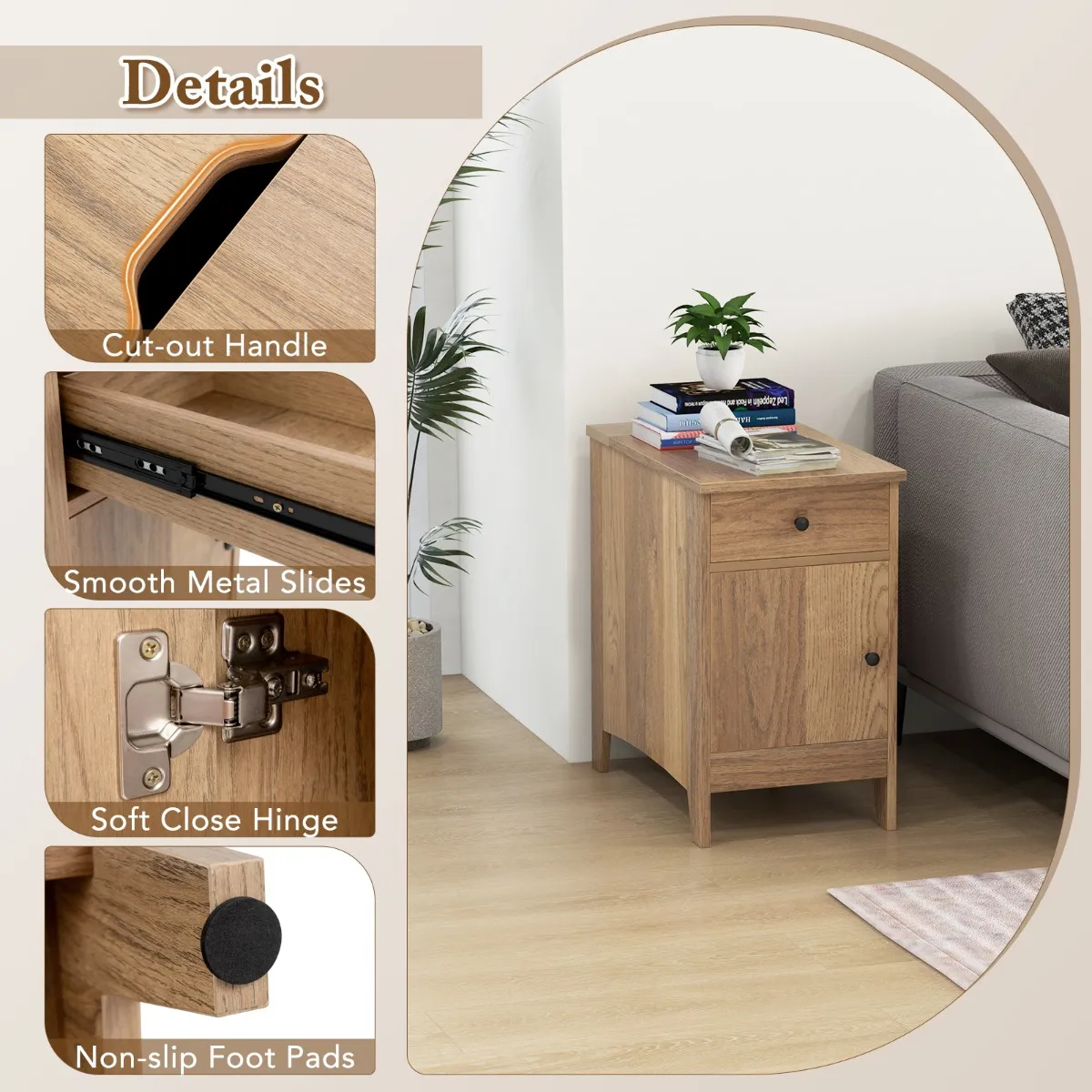 【Elegant ontwerp voor verschillende omgevingen】: Het elegante, eigentijdse ontwerp van het nachtkastje past in elke kamerstijl, modern of traditioneel. Of het nu naast een bed of bank staat, het nachtkastje is zeker een betrouwbare aanvulling.