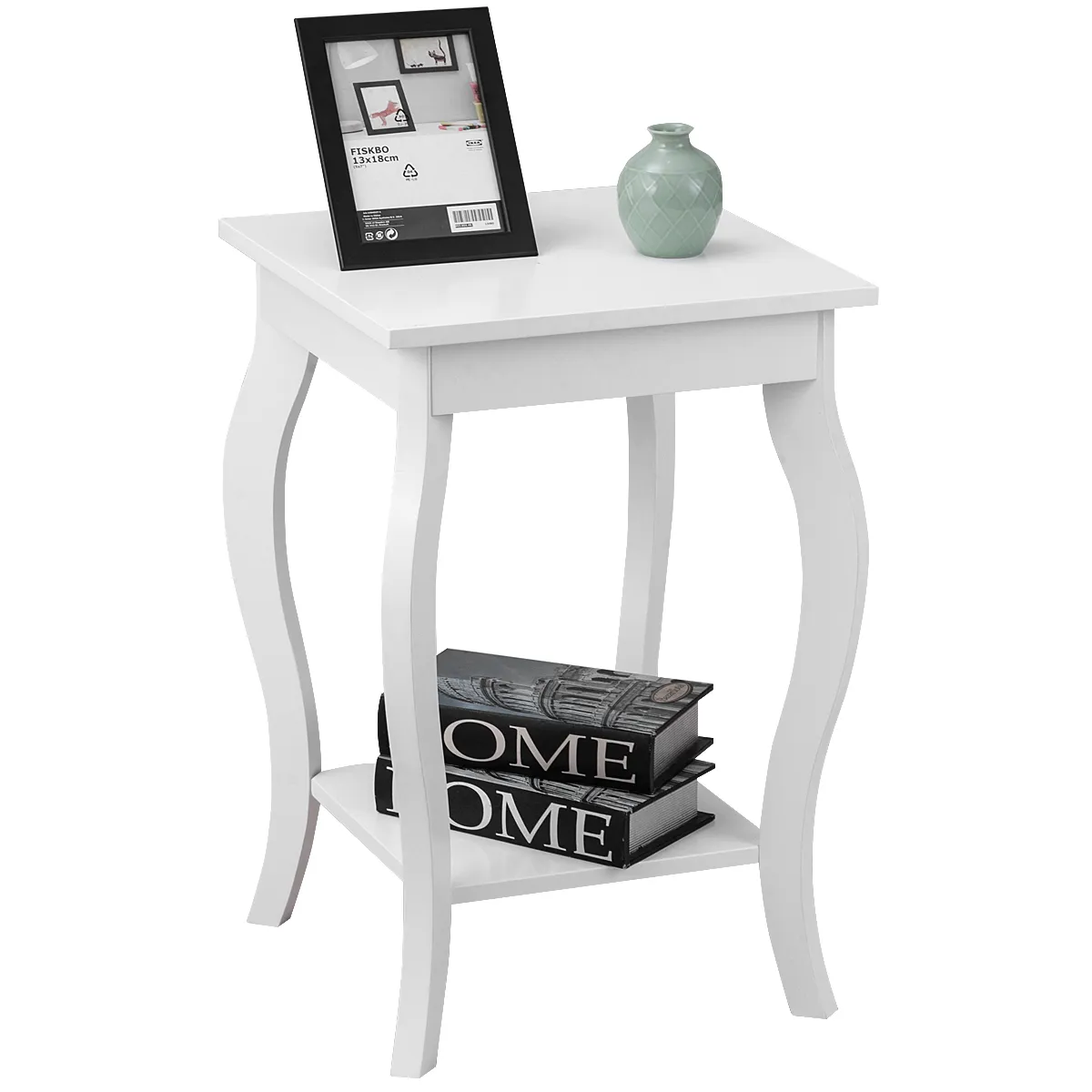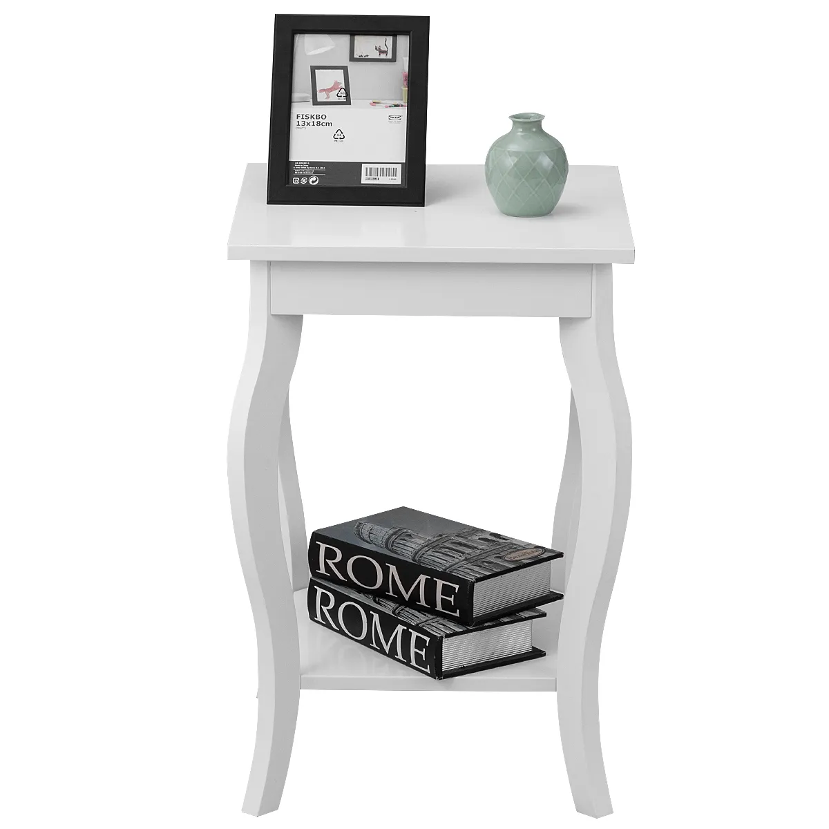 Onze 2 bijzettafels zijn de perfecte oplossing om de opbergruimte in je huis te vergroten. Deze moderne vierkante hoektafels zijn uitgerust met planken met dubbele verdiepingen, die voldoende opbergruimte bieden en zo voor orde in de kamer zorgen. De robuuste hardware dient ter verhoging van de stabiliteit van deze zijdelingse opbergrekken. Bovendien beschikt elk nachtkastje over een glad tafelblad voor eenvoudig dagelijks onderhoud. De voetkussens aan de onderkant spelen een belangrijke rol bij de bescherming van de vloer als de bijzettafel beweegt. Door de perfecte afmetingen zijn ze zeer geschikt voor vele gelegenheden zoals kantoor, woonkamer en slaapkamer.
