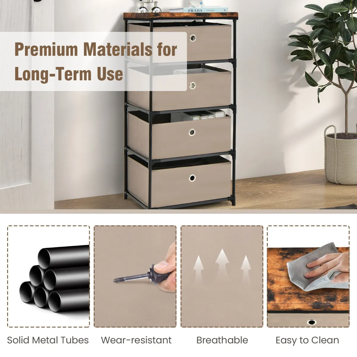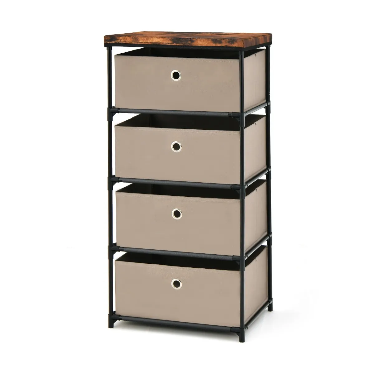 Deze opberglade zal je levenskwaliteit aanzienlijk verbeteren en je kamer vrij van rommel houden. 4 laden en een breed oppervlak bieden veel opbergruimte voor kleding, brillen, lampen, boeken en andere voorwerpen. Het stabiele metalen frame biedt betrouwbare ondersteuning. De van non-woven gemaakte laden zijn niet alleen eenvoudig op te vouwen, maar ook bestand tegen slijtage en zijn daardoor perfect geschikt voor langdurig gebruik. Het lijdt geen twijfel dat deze ladetoren ideaal is voor slaapkamers, woonkamers, gangen en kleine appartementen. Met zo’n praktische organizer bij de hand, waar wacht je nog op? Bestel nu.