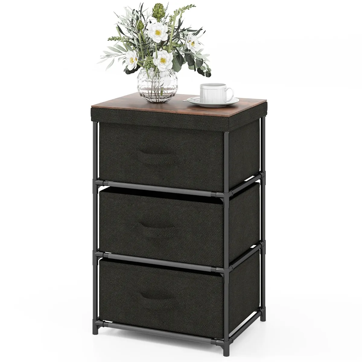 Deze opberglade zal je levenskwaliteit aanzienlijk verbeteren en je kamer vrij van rommel houden. 3 laden en een breed oppervlak bieden veel opbergruimte voor kleding, brillen, lampen, boeken en andere voorwerpen. Het stabiele metalen frame biedt betrouwbare ondersteuning. De van non-woven gemaakte laden zijn niet alleen eenvoudig op te vouwen, maar ook bestand tegen slijtage en zijn daardoor perfect geschikt voor langdurig gebruik. Het lijdt geen twijfel dat deze ladetoren ideaal is voor slaapkamers, woonkamers, gangen en kleine appartementen. Met zo’n praktische organizer bij de hand, waar wacht je nog op? Bestel nu.