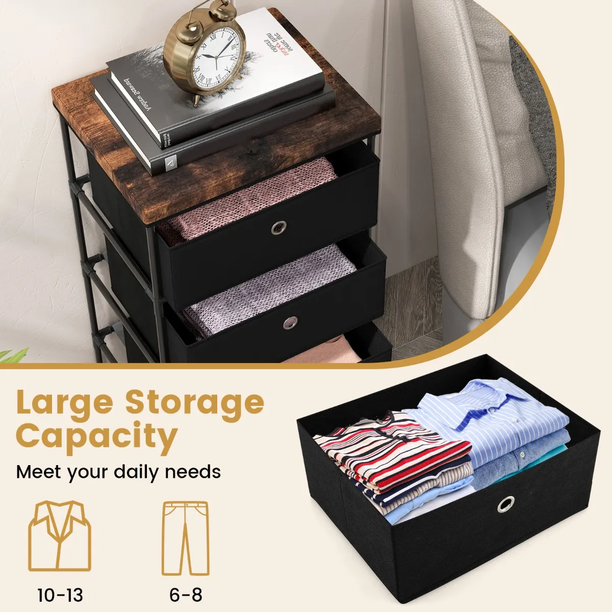 【Veelzijdig bruikbaar】De klassieke opbergcommode past gemakkelijk bij elke interieurstijl. Je kunt ze naast je bed als hoog nachtkastje of in een kast als extra opbergruimte plaatsen.