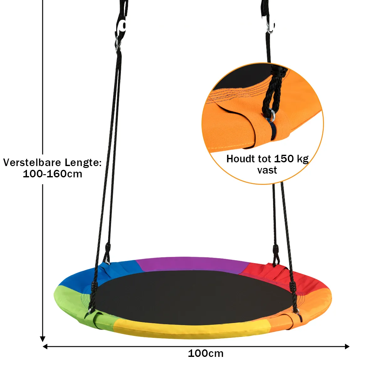 De tuinschommel ziet er modern, mooi en stabiel uit. Met praktisch ontwerp is de kinderschommel opvouwbaar. Als je de nestschommel wilt opbergen, neemt de platenschommel weinig ruimte in beslag. De hoogwaardige materialen garanderen een goede kwaliteit en een lange levensduur van de schommel. De ronde schommel is geweldig speelgoed voor de kinderen en zal u en uw kinderen aan het lachen maken.