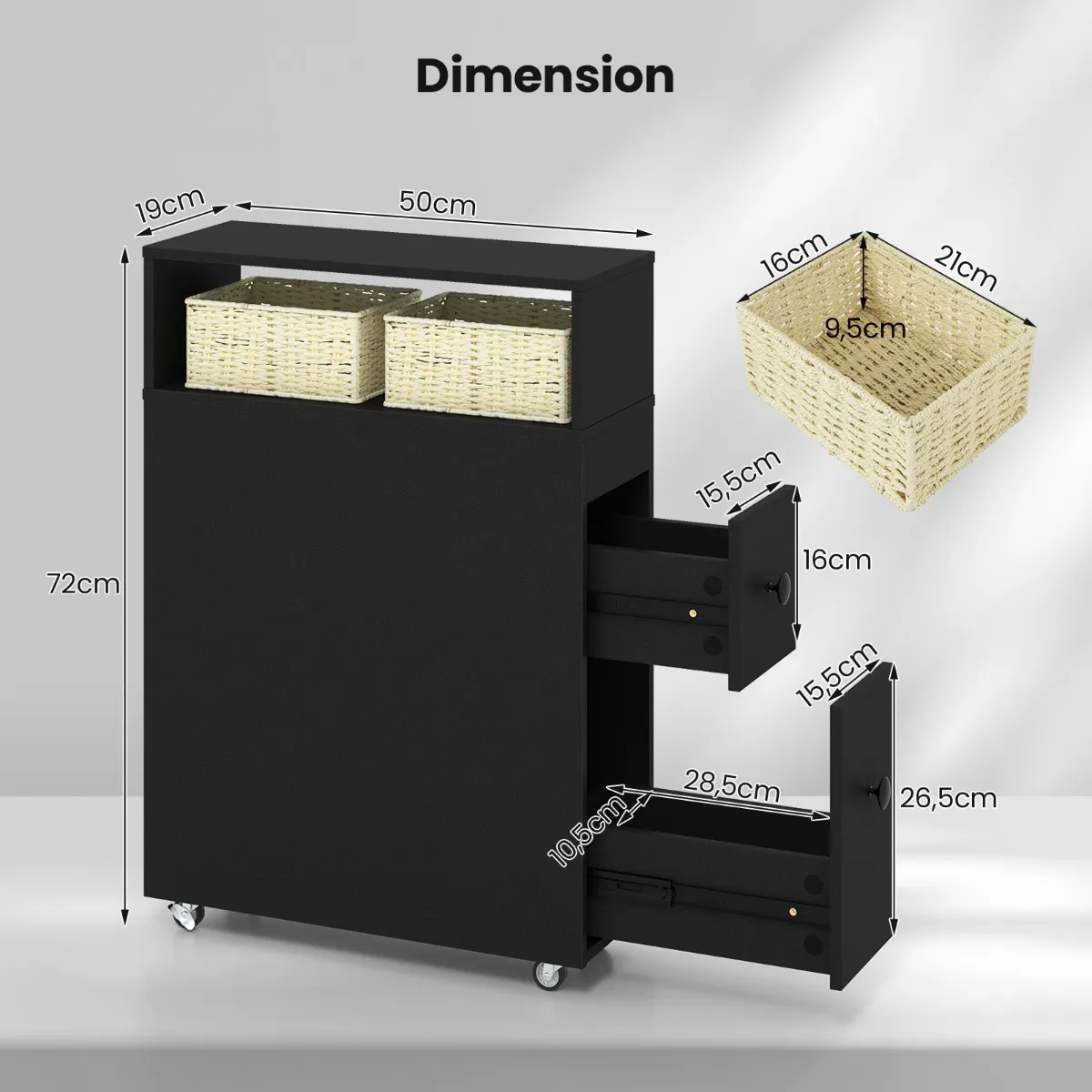 - Totale afmetingen: 50 x 19 x 72 cm (l x b x h)